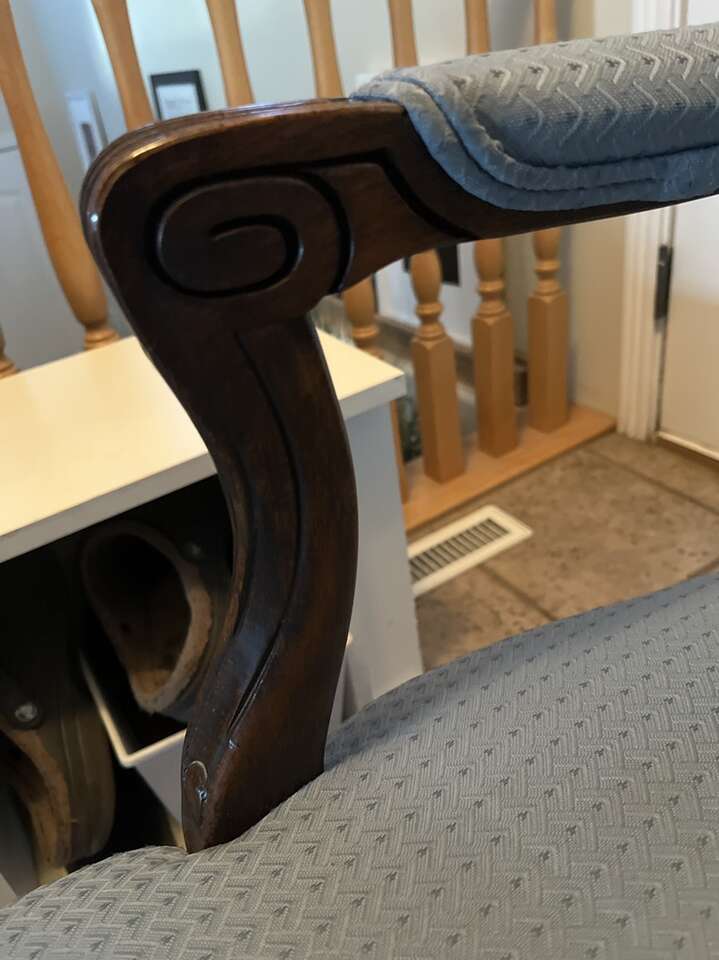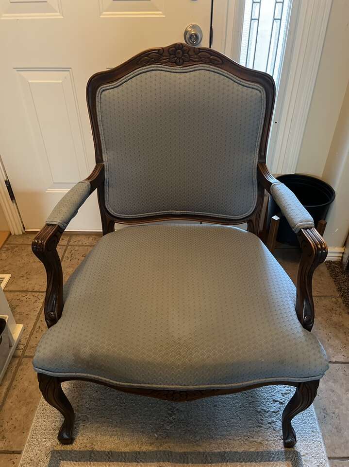 VenmoThis chair has been in my family for multiple generations. The hand carved wood is completely unique. It is in really good condition. It comes with a matching floor mat.