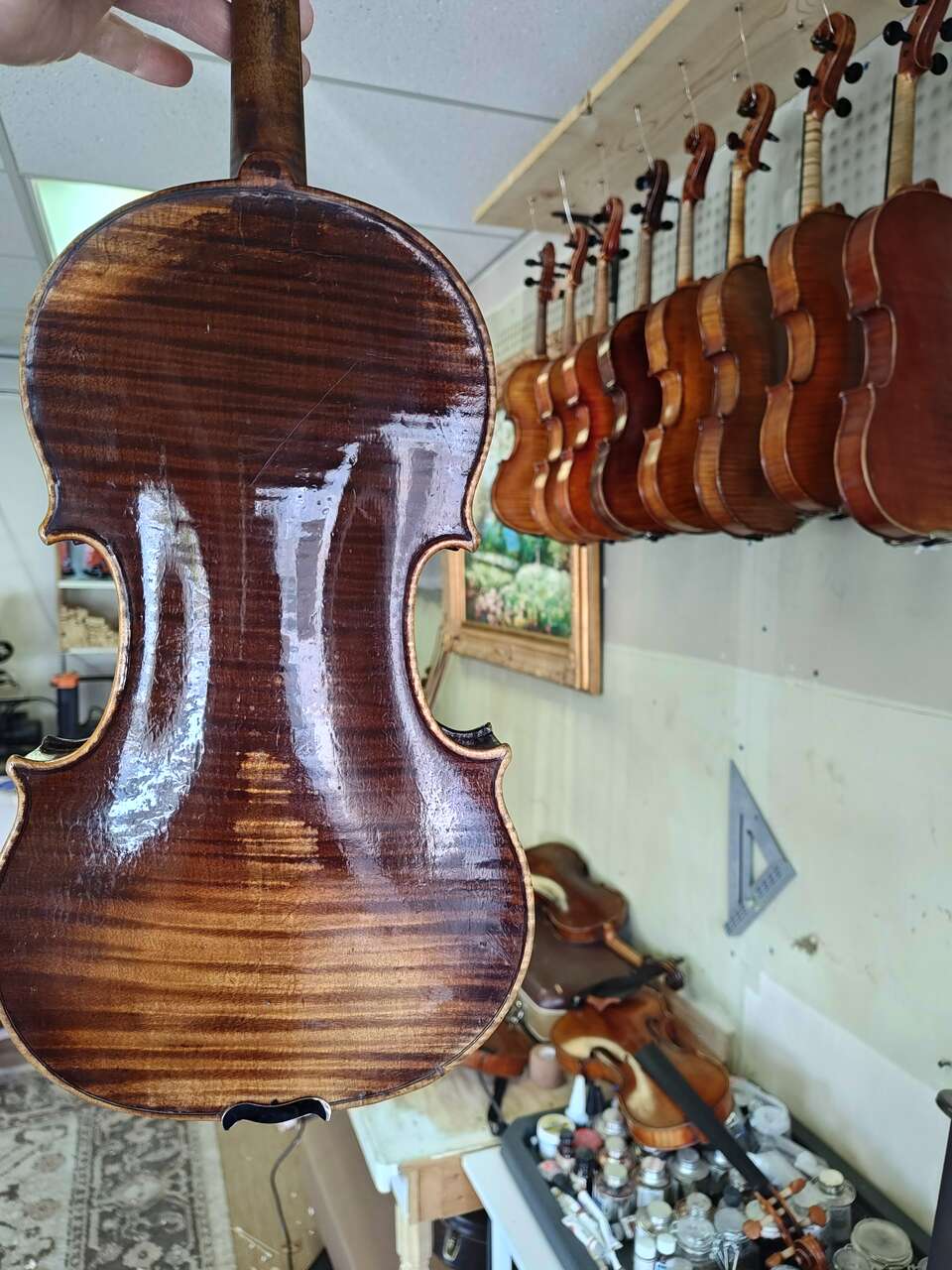 Retail of $14,000. Only asking $3,500 because of repairs to the top of the back on the violin which devalue the instrument a little bit but do not cause any structural issues. Still please perfectly and no repairs will cause any future problems. I just price things down when they have repairs done like that. So a great opportunity to get a professional grade instrument for a fraction of the price. Made c..1820 has a big, dark , warm open sound that is really lovely and powerful. Have many other fine violins and bows and violas all at wholesale prices. I have been supplying violin shops around the country for many years with violins. You can also buy them direct for me.