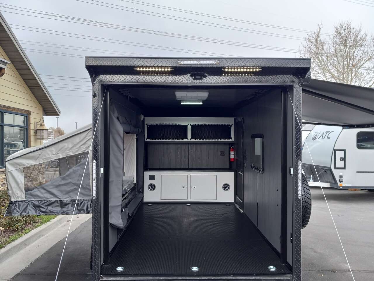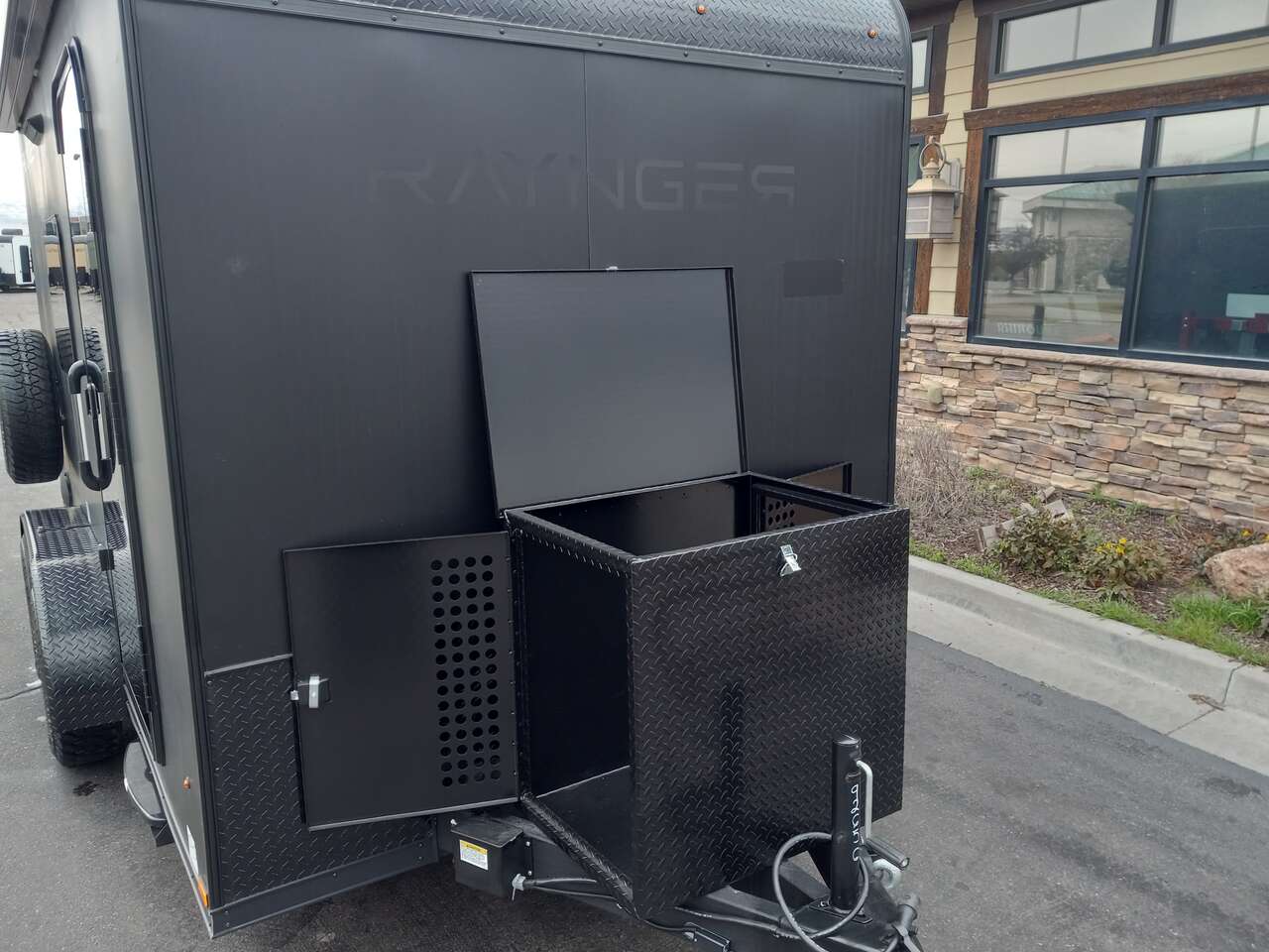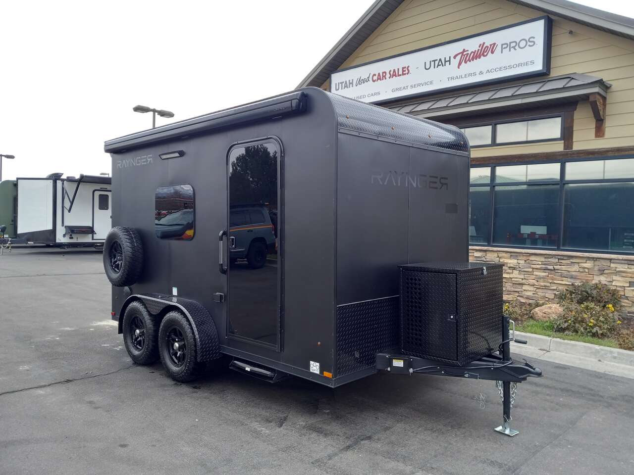 SOLD. LIMITED TIME $248 A MONTH WITH ZERO DOWN WITH OUR SPECIAL LOCAL CREDIT UNION PARTNER!!! NO PRE-PAYMENT PENALTIES!!! NEW MODEL!!! RAYNGER PREMIUM OFF ROAD TOY HAULER CAMPER!!! 19 INCH GROUND CLEARANCE!!! OFF ROAD TIRES!!! FULLY INSULATED!!! HEATING AND A/C!!! WET SOUND STEREO!!! FOLD OUT/POP OUT TENT WITH MATTRESS!!! Aluminum Ventilated Locking Generator Box!!! 11.1 Foot Long Garage Space!!! And Much MUCH MORE!!! Check out our Specs!!! Also available in 18 foot models. 18 Foot Models can have 3 Fold Out Beds/Pop Out Tents. 16 Foot and 18 Foot Models will fit ANY stock 4 Seater Side by Side • 6” I Beam Frame• Flat Top Design• Flat Front Design• Wall Posts 16” on Center• Cross Members 16” on Center• Roof Bows 16” on Center• Rust Inhibiting Z-Tech Protection on Chassis• Ameraguard on Tongue• Ameraguard on Rear Bumper• Ameraguard Around All Door Openings and Stepwell• Ameraguard Around Edges of Ramp Door• 3500 LB Spring Axles• 2-5/16” Coupler• One-Piece Aluminum Roof• ST235/75R15 Aluminum Wheels with Chrome Center Caps• 2000# Ramp Door with Eberhard Latch• 30” Tempered Glass RV Door with Screen Door• .030 Exterior Metal with Screwless Sides• 24” Black Stoneguard• 3” Black Bottom Trim• Sand Pad• Black Door Hold• 2.7mm Charcoal Textured Vinyl Ceiling • 9mm Charcoal Textured Vinyl Walls• 3/4” Engineered Wood Floor with Rubber Coin Overlay• (6) 1200 LB Floor D rings Installed with Backer Plates• LED Clearance Lights and Tail Lights• LED Back-up Lights• No Show Wheel Box• Spoiler with Toggle Switch• RV Step• 7’ Interior• (2) 17” Chrome Base Lights with Switch• (1) Black 17” Spot Light with Switch• (1) 30 Amp Panel with Marine Plug• A/C Unit with Heat Strip• (3) Interior Recepts• (1) Exterior Recept• 12V Battery and Charge Line• Prep for Backup Camera• Wet Sounds System• (3) Blue Interior Cabinet Lights• (1) 6’ Section of Flex Lights• Black ATP Rear Header and Hoop• Black ATP Fenders• Insulated Walls & Ceiling• Base Cabinets• Overhead Cabinets with Netting Over Compartments• Pop Out Tent• Black ATP Storage/Generator Box Mounted On Tongue.