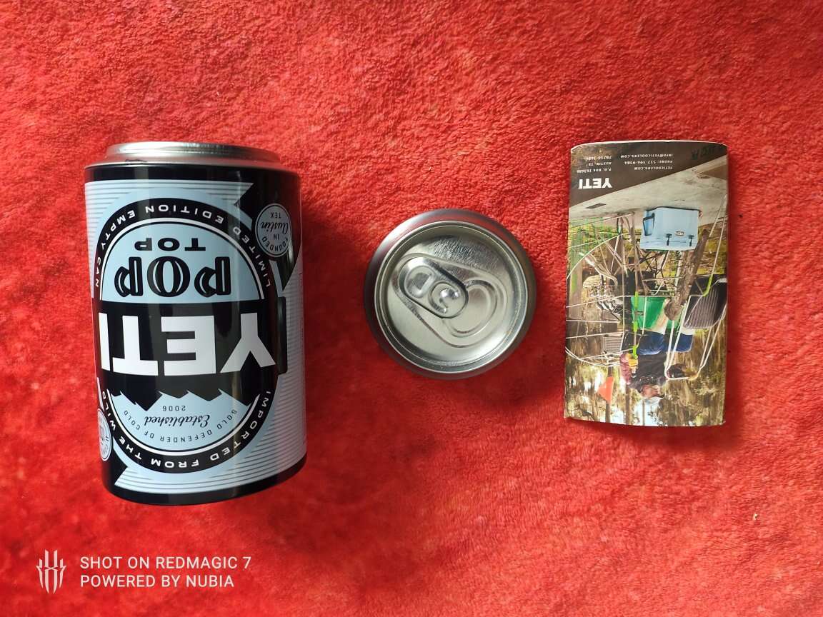 Yeti Pop Top Limited Edition Empty Can. Lid opens up for storage inside. new condition. Measures approx 5" tall.