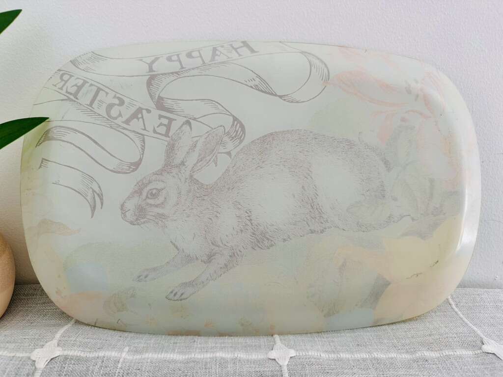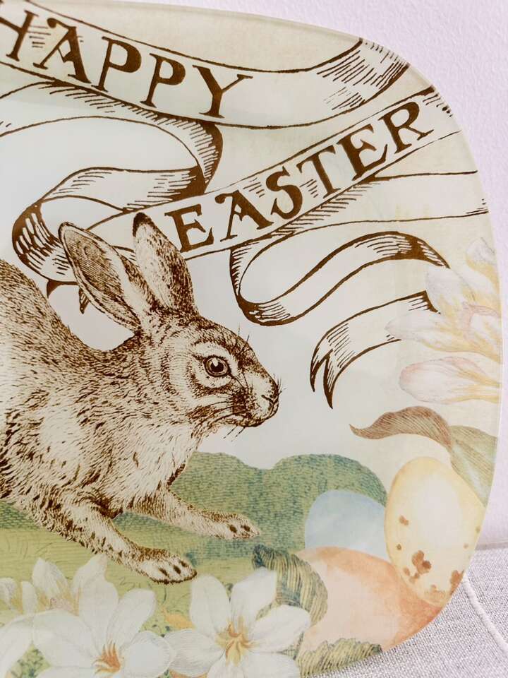 CashAppBeautiful semi-translucent rectangular glass Easter plate in excellent condition. Made by Williams Sonoma, and is a great quality springtime platter. Is beautifully illustrated with flowers and a brown bunny rabbit on the front, and the backside is a softly frosted white glass finish. Would be a great potluck plate for salads, snacks and desserts. Has some small signs of wear on the underside (as pictured) but is otherwise in perfect condition. Measures 15.5 inches by 10 inches, and the raised edges go up about 3/4 of an inch. Located in Layton