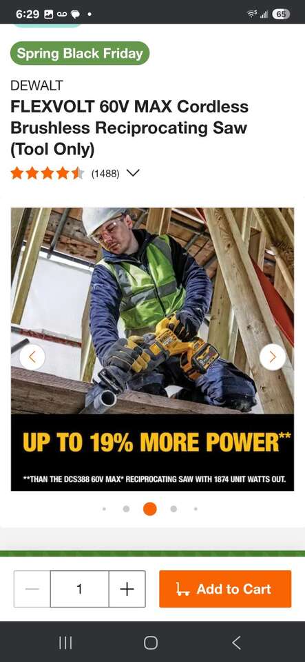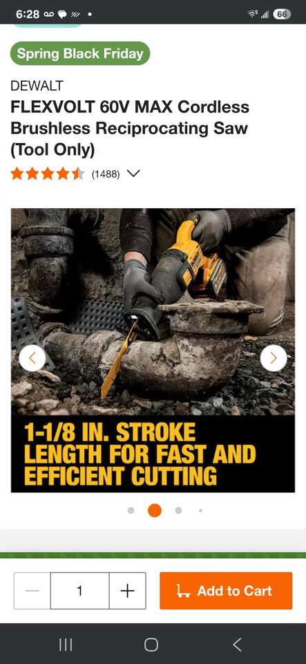 ZelleUsed Dewalt FlexVolt 60V MAX Cordless Brushless Reciprocating Saw Kit. Comes with brand new 6AH FlexVolt Battery. The saw is used, but works great. Model Number DCS389T1. Check out my other listings for more new and used Dewalt tools.