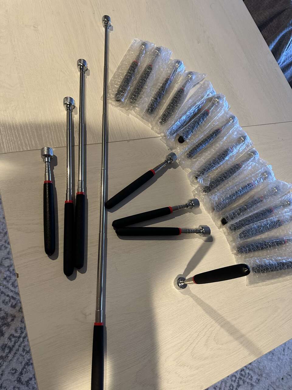 VenmoBrand new telescoping magnetic pickup tools. They adjust from 7" to 30", with a 3/4" magnetic head. They are heavy-duty, well, made with cushioned grips. These are not the cheap flimsy ones. I'm selling these for $4 each with a minimum purchase of 4. (50 available)