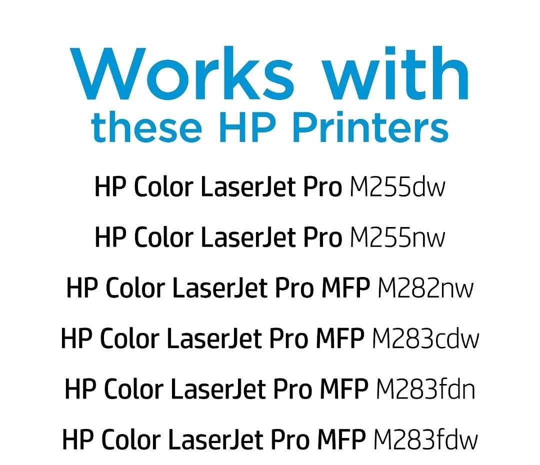 HP 206A Magenta Standard Yield Toner Cartridge (W2113A) is compatible with the following HP printers: HP Color LaserJet Pro M255dw, M283fdw, M283cdw