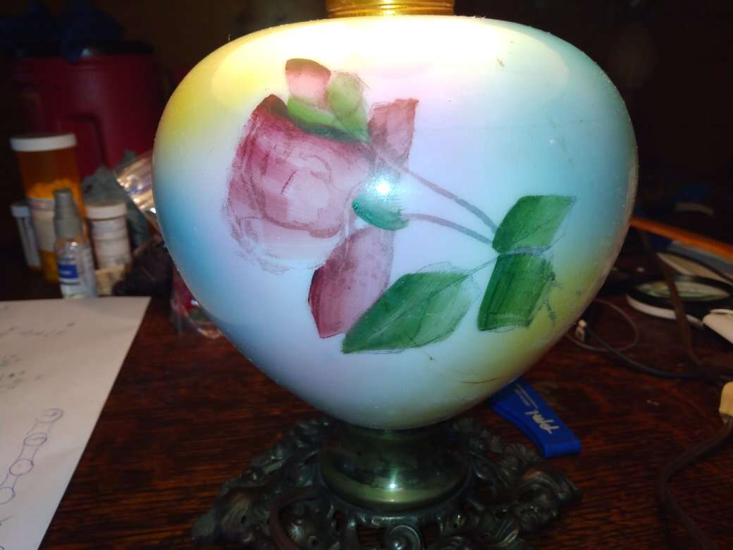 Antique hand painted glass base lamp in good shape.