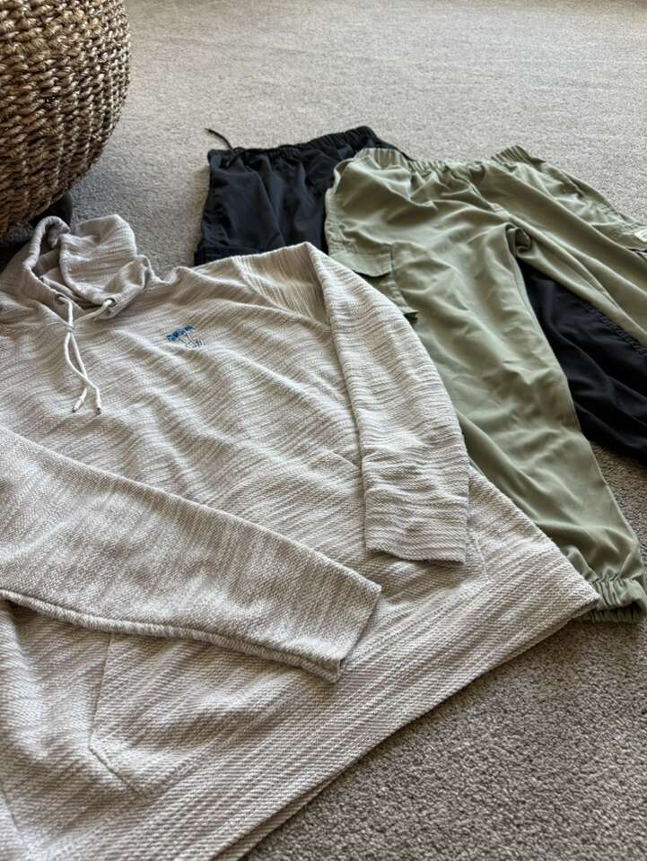 Venmo2 pairs of pants for sale, size medium, and 1 hoodie size large, in good condition with no holes, rips or stains.