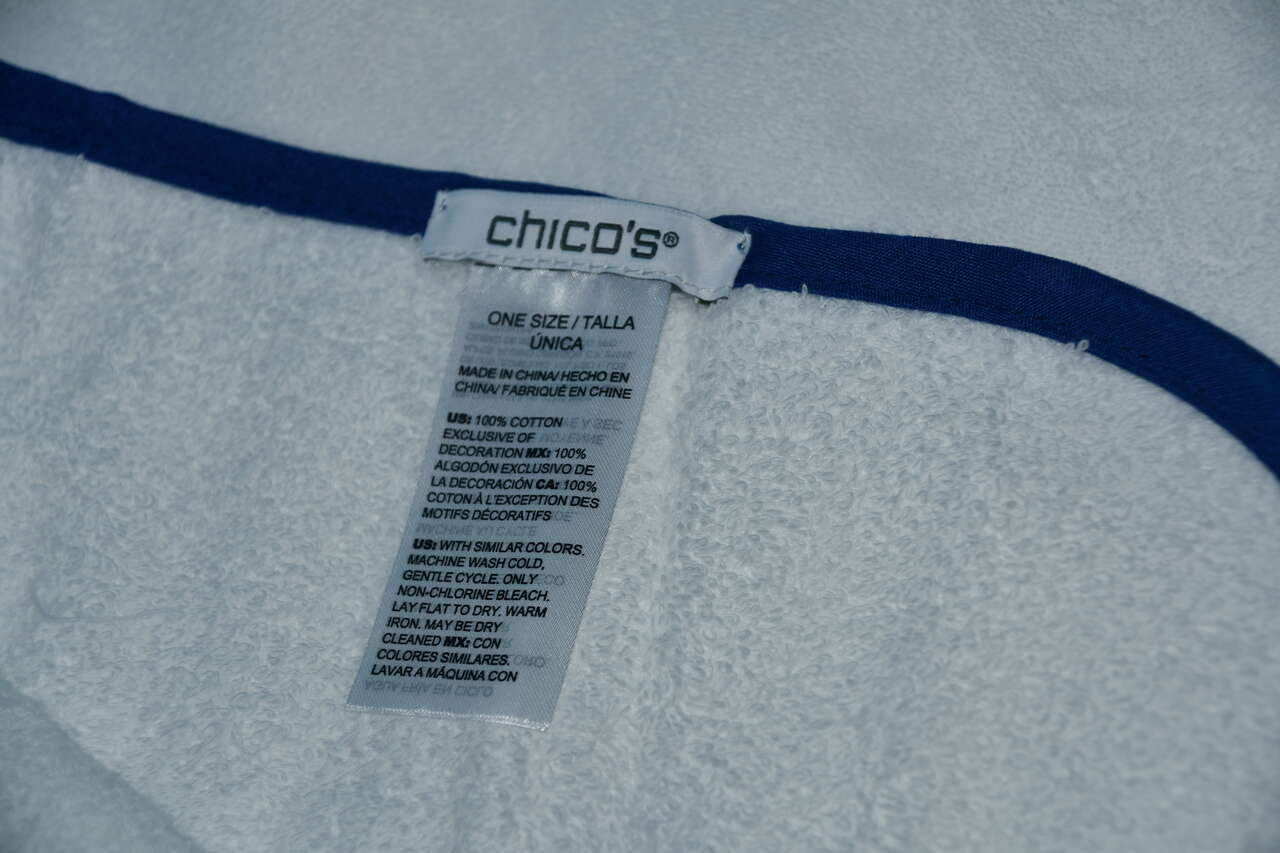 This NEW, HIGH QUALITY CHICO'S BEACH TOWEL has the word "RELAX" embroidered. It is about 40" x 68". It is 100% COTTON. Our home is smoke free. Questions??? Please ask. We are located in Plain City. Cash only please.