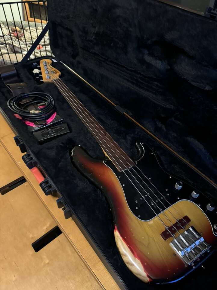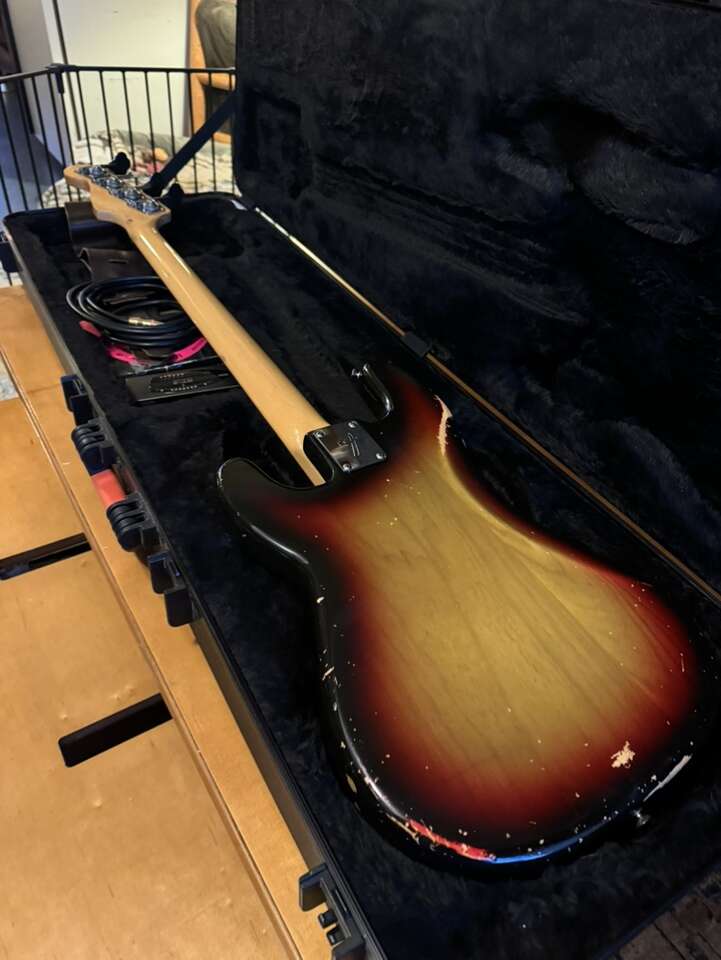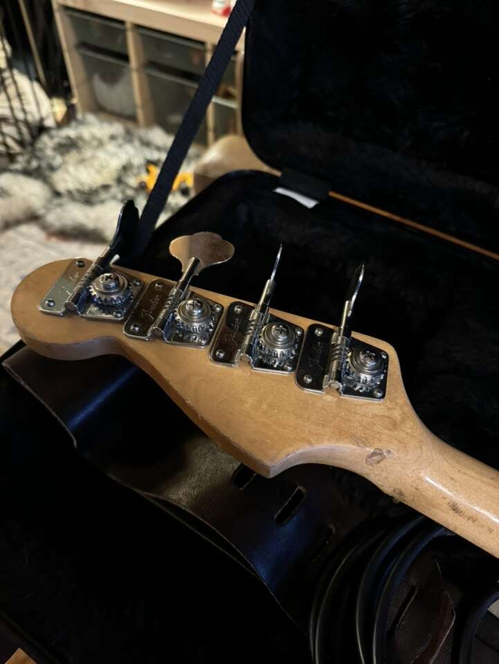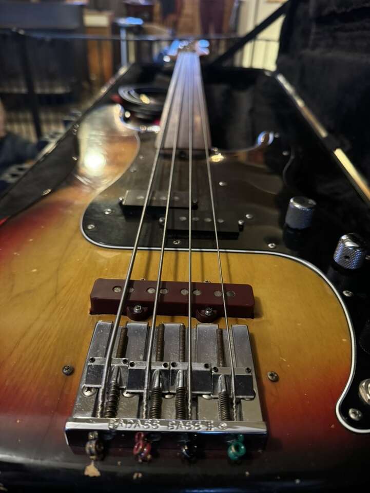 Bridge jazz pickup was installed by the original owner in the mid 1980’s. Badass bridge installed by the original owner, not sure when.
