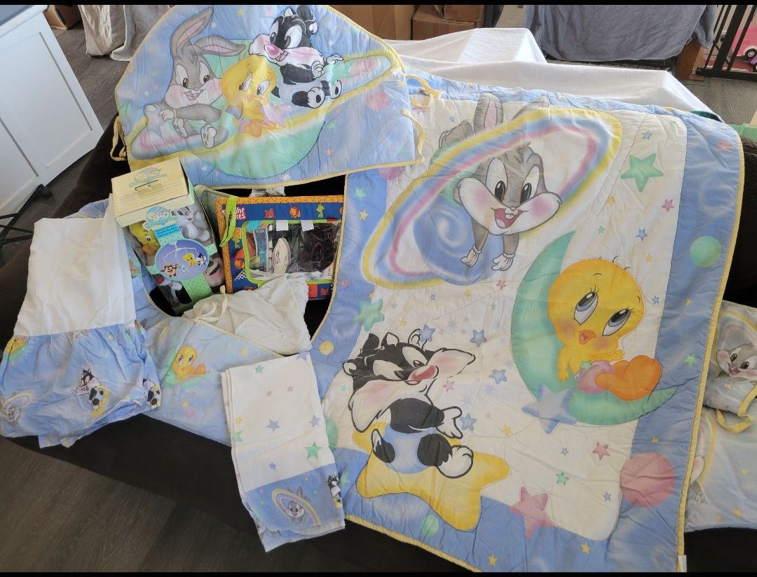 Vintage 90s Warner Brother BABY LOONEY TUNES IN OUTER SPACE Crib Bedding 8 piece set