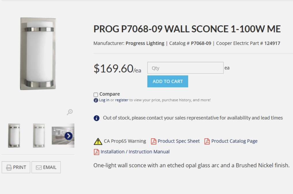 New PROGRESS LIGHTING P7068-09 1-light Ada Wall Sconce- Brushed Nickel and glass shade. 3 available and price is for each