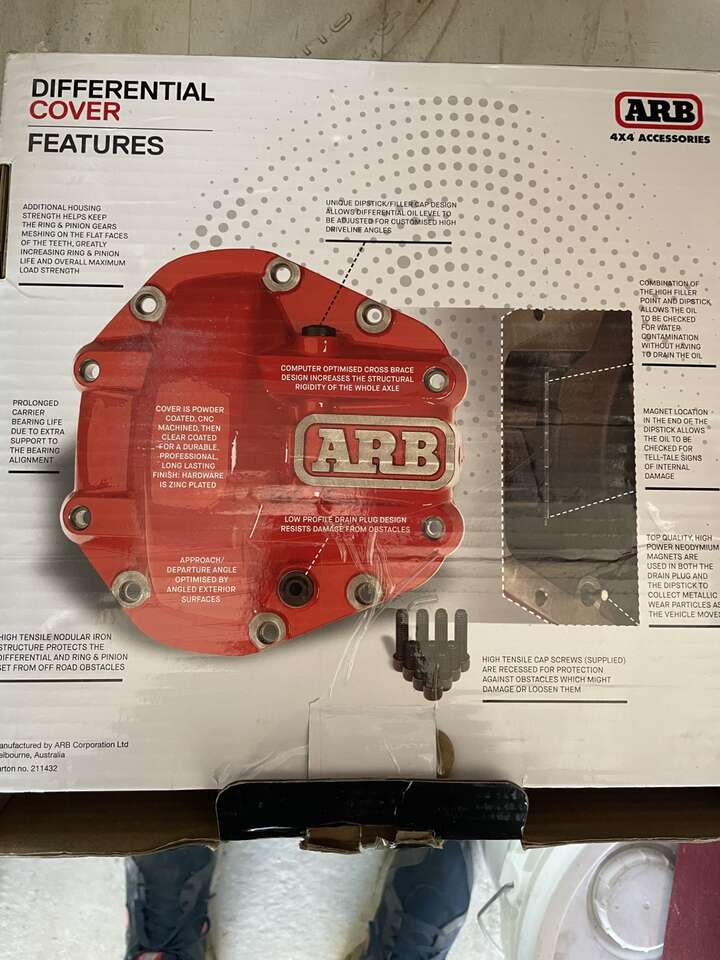 Jeep JL/JT Rubicon Front Dana 44 Differential Cover ARB Front M210 Diff Cover Features · High-tensile nodular iron structure protects the differential and ring and pinion set from off -road obstacles · Computer optimized cross-brace design within the differential cover, increases the structural rigidity of the whole axle acting as a truss · Approach/departure angle optimized by angled exterior surface · Prolonged carrier bearing life due to extra support to the bearing alignment · Additional housing strength helps keep the ring and pinion gears meshing on the flat faces of the teeth, greatly increasing ring and pinion life and overall maximum load strength · High quality and strong neodymium magnets are used in both the drain plug and the dipstick to attract metallic wear particles to eliminate premature wear · Magnet location in the end of the dipstick allows the oil to be checked for tell-tale signs of internal damage - without removing the cover or draining the oil · Low profile drain plug design resists damage from obstacles · Combination of the high filler point and dipstick allows the oil to be checked for water contamination without having to drain the oil · Unique dipstick/filler cap design allows differential oil level to be adjusted for customized high driveline angles · Cover is powder coated, CNC machined, then clear coated for a durable, professional, long lasting finish—all hardware is hardened & plated · Tensile cap screws (supplied) are recessed for protection against obstacles which might damage or loosen them Heavy Duty Axle Protection ARB’s Differential Cover will protect your differential against the hazards of competition or extreme off-road use. When off-road, it is inevitable that obstacles encountered could potentially inflict expensive damage on your differential. To prevent this, ARB’s Differential Cover has been specifically engineered to protect the differential and ring and pinion set and your ARB Air Locker® from any off-road hazards. Note: These will not clear track bar on stock height applications. $145.00 OBO Text or Call Jared. 801-971-1234