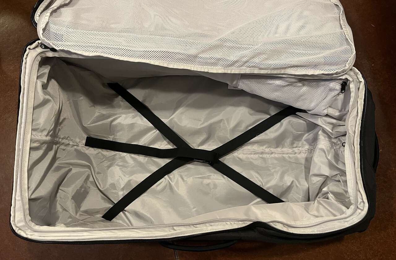 ZelleBrand new, never used! Bring the whole gear closet on your next trip. With a 90-liter capacity and durable wheels for convenience, this is the biggest baddest duffle on the block. Water and Stain Resistant Outer Fabric Cushioned Handles Easy Access to Main Compartment Front Accessory Pocket Internal Pockets Retractable Top Handle Name Card Template