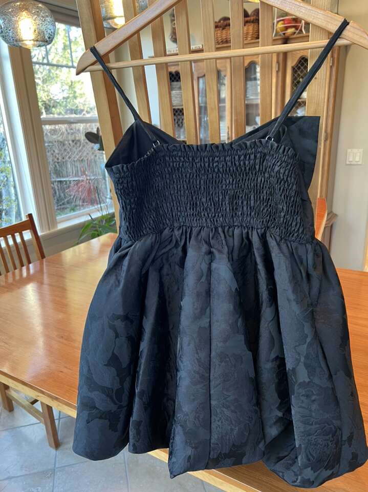 Fun bow in front. Tried to capture the fabric detail. Believe a size small. Would be a great Prom dress or any dance dress. $45