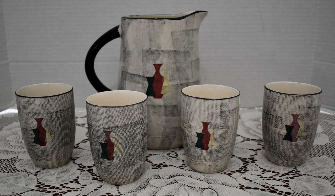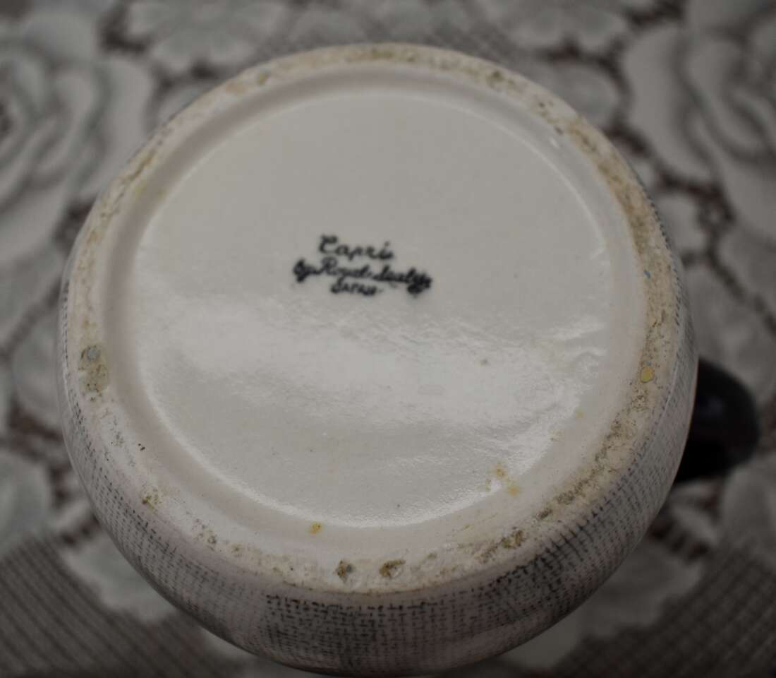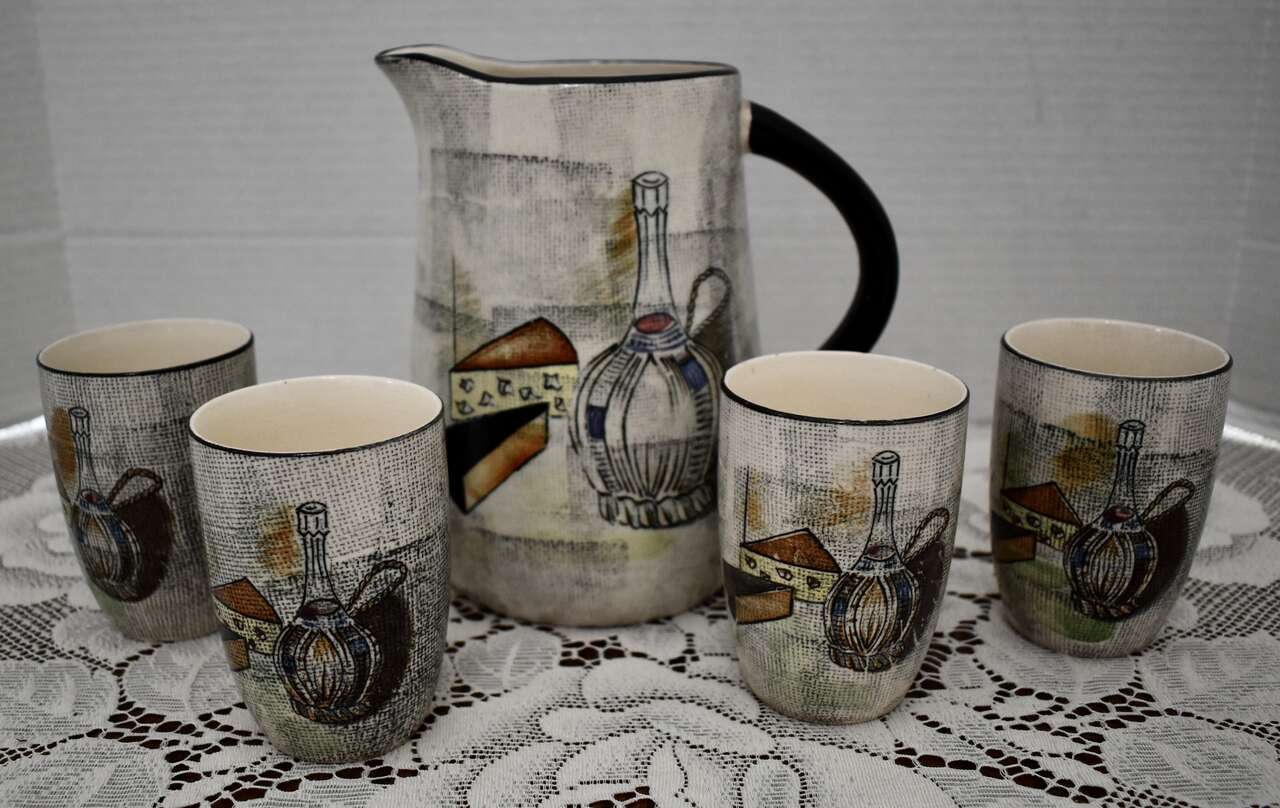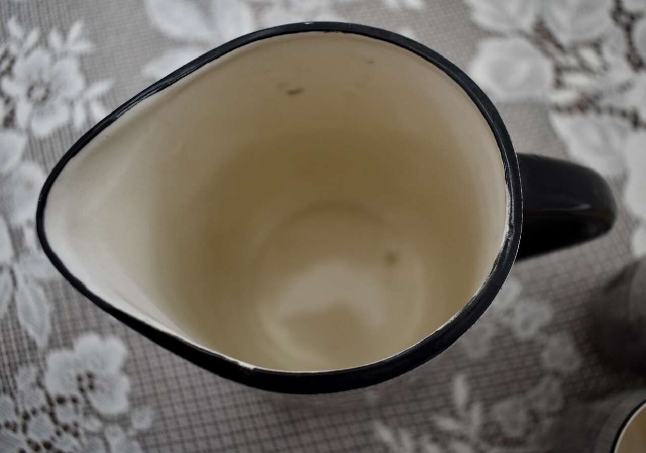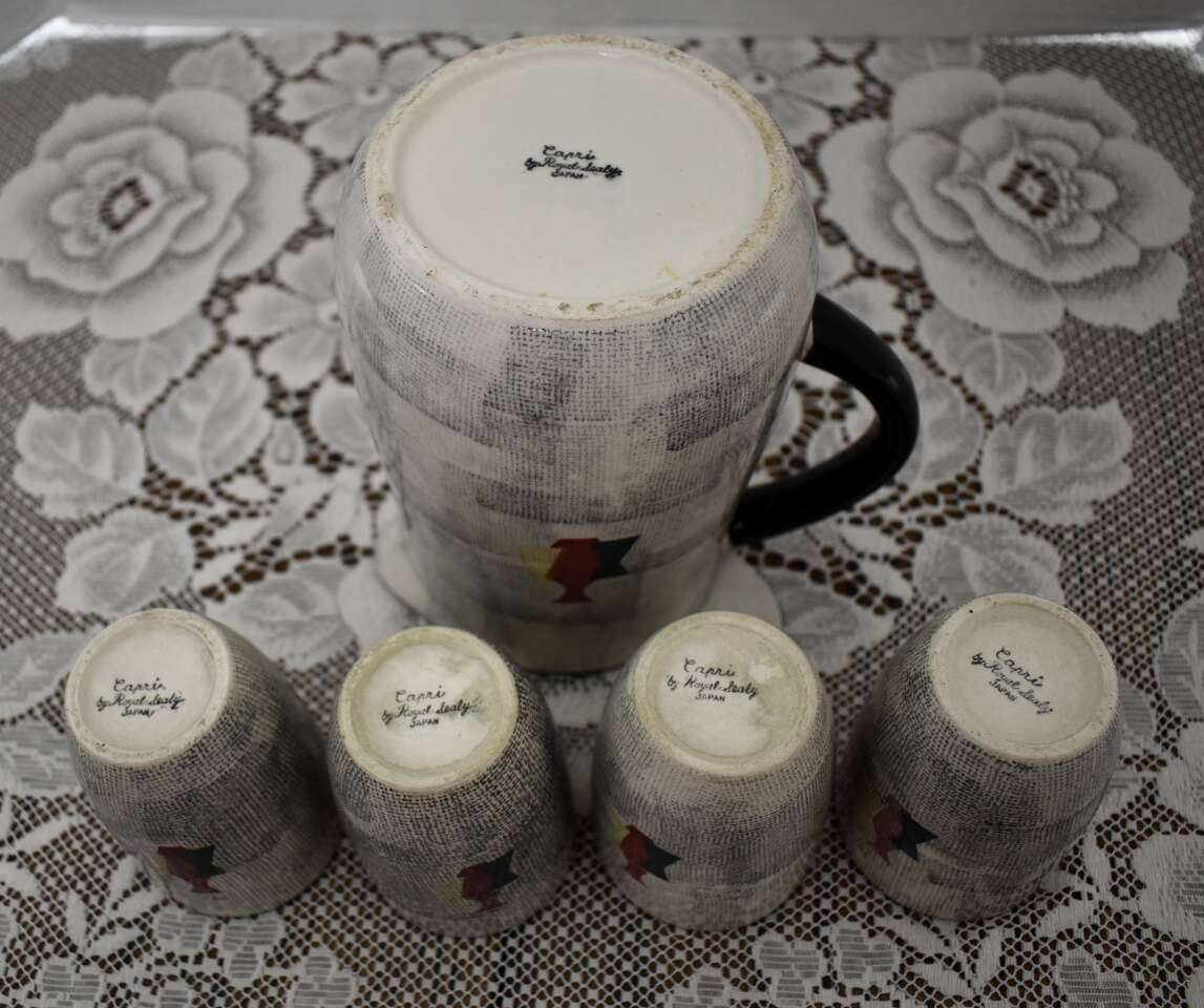 IT MEASURES… The 4 Cups Measures… 3 1/2 inches tall and the Pitcher Measures… 6 3/4 inches all measured at the pouring area to the bottom and it measures… approx. 6 1/2 inches tall at the other side of the pitcher.