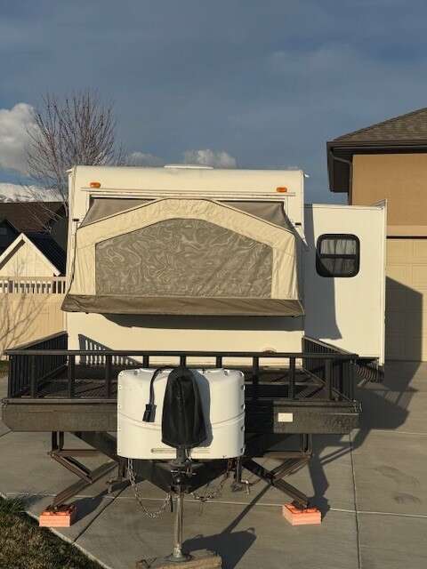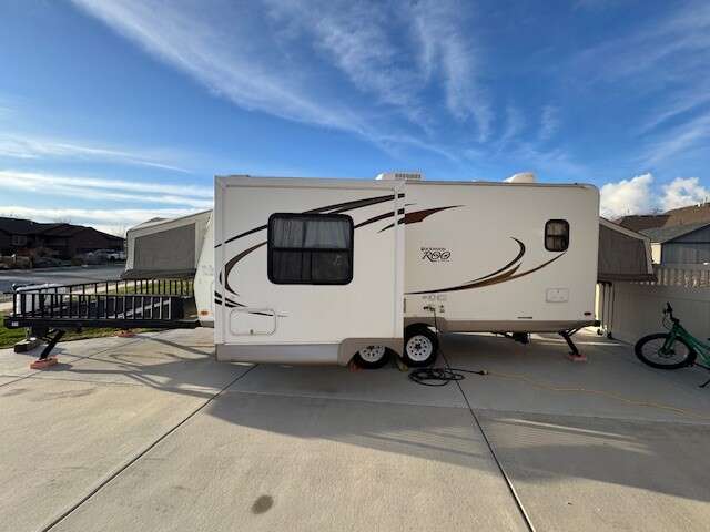 Venmo2010 Forest River Rockwood Roo Toy Hauler in great condition. Selling because we don't use it enough. Want it to go to someone that will get it out to the moutains. The front deck is 8 ft wide x 103 inches long. The trailer is 33 ft long from the hitch to the bumper. Empty weight is 7410lbs I’m not sure of the fully loaded weight but I pull it with a Chevy Silverado 1500, that’s with 2 four wheeler a full potable water tank and all the needs of a family of 4 for a 3 night stay.