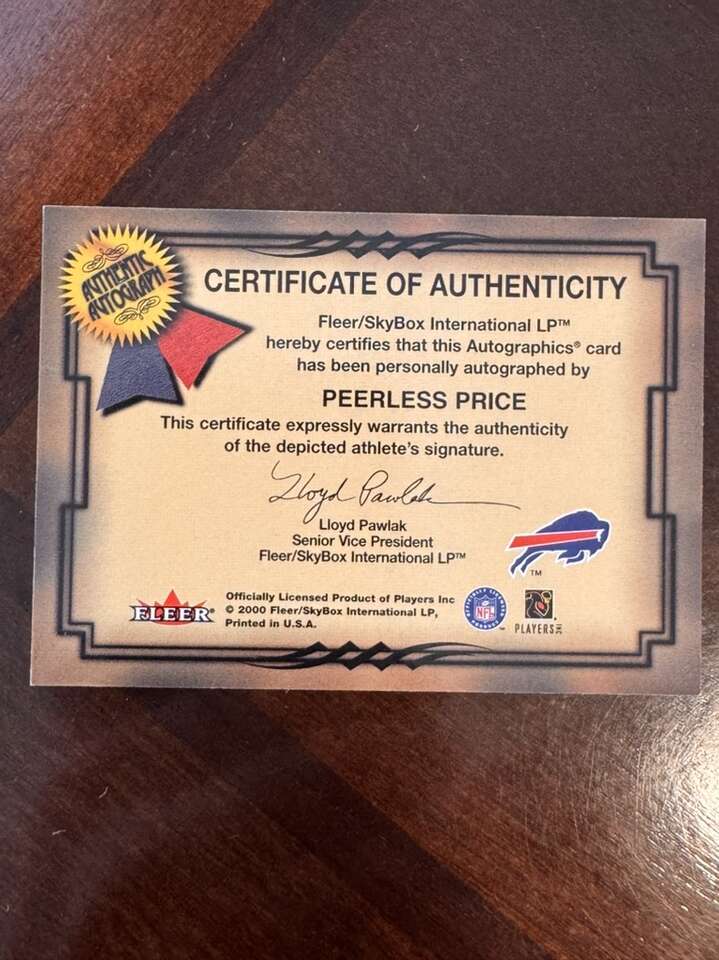 2000 Fleer Tradition Autographics Peerless Price Auto Buffalo Bills On Card Auto