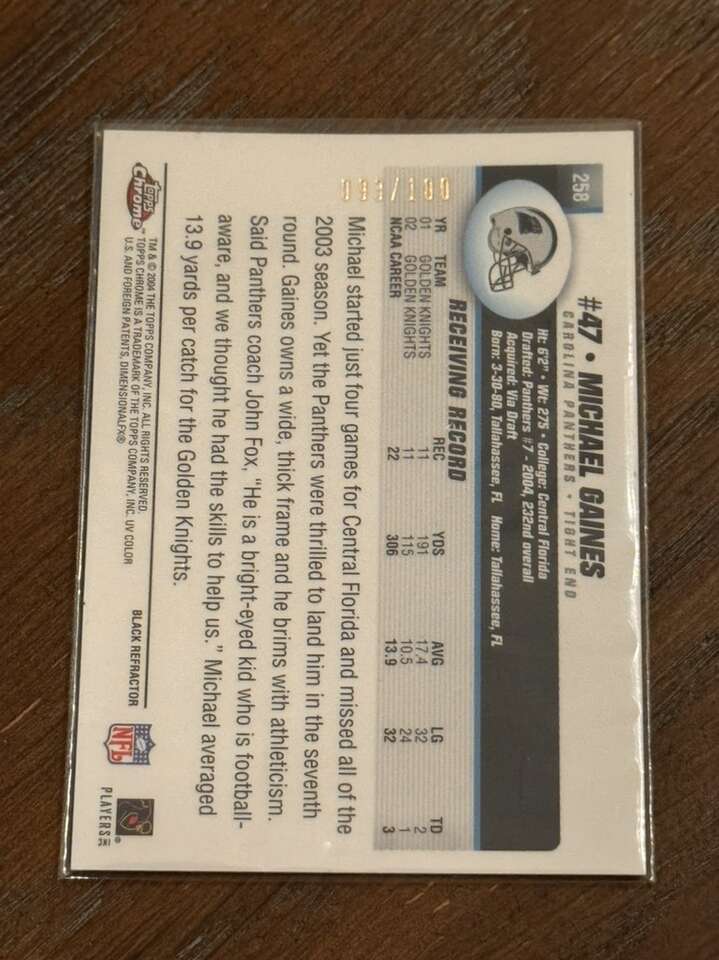 2004 Topps Chrome Michael Gaines Rookie Black Refractor /100 Carolina Panthers