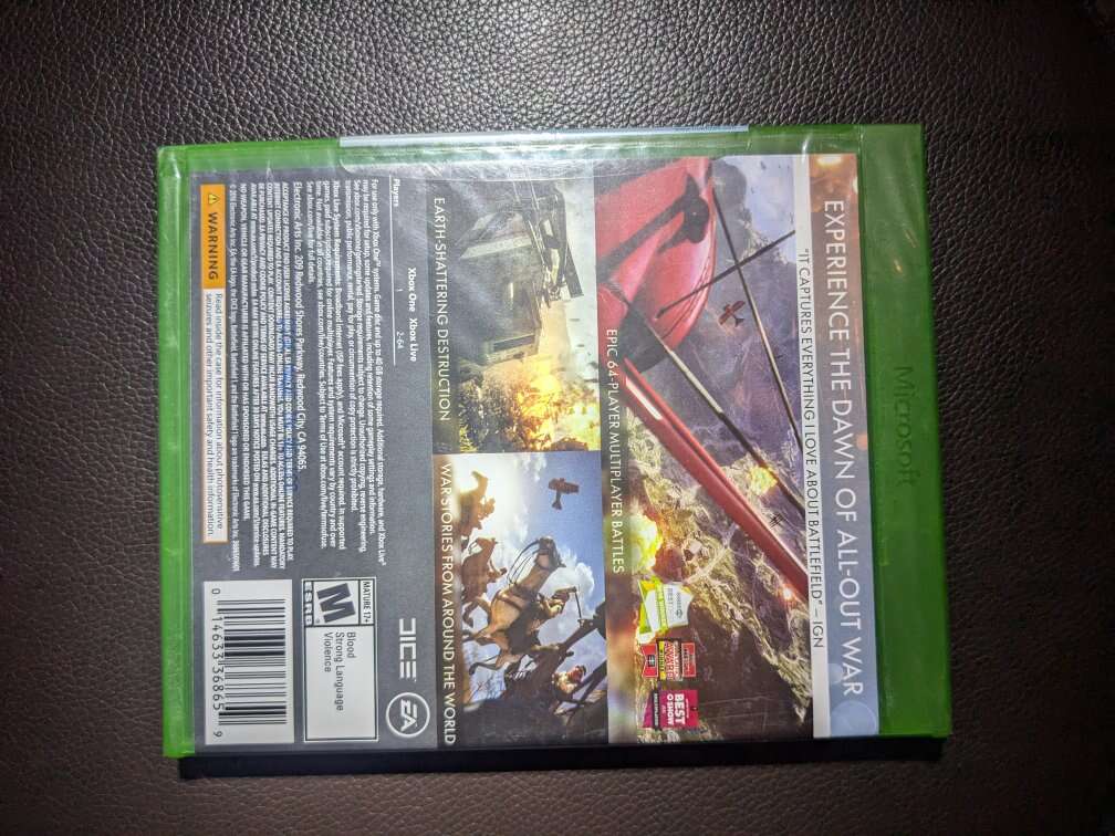 Xbox One Battlefield 1 brand new in box factory sealed. Located in Orem UT. Open to trades of greater value. I'm asking $20 cash.