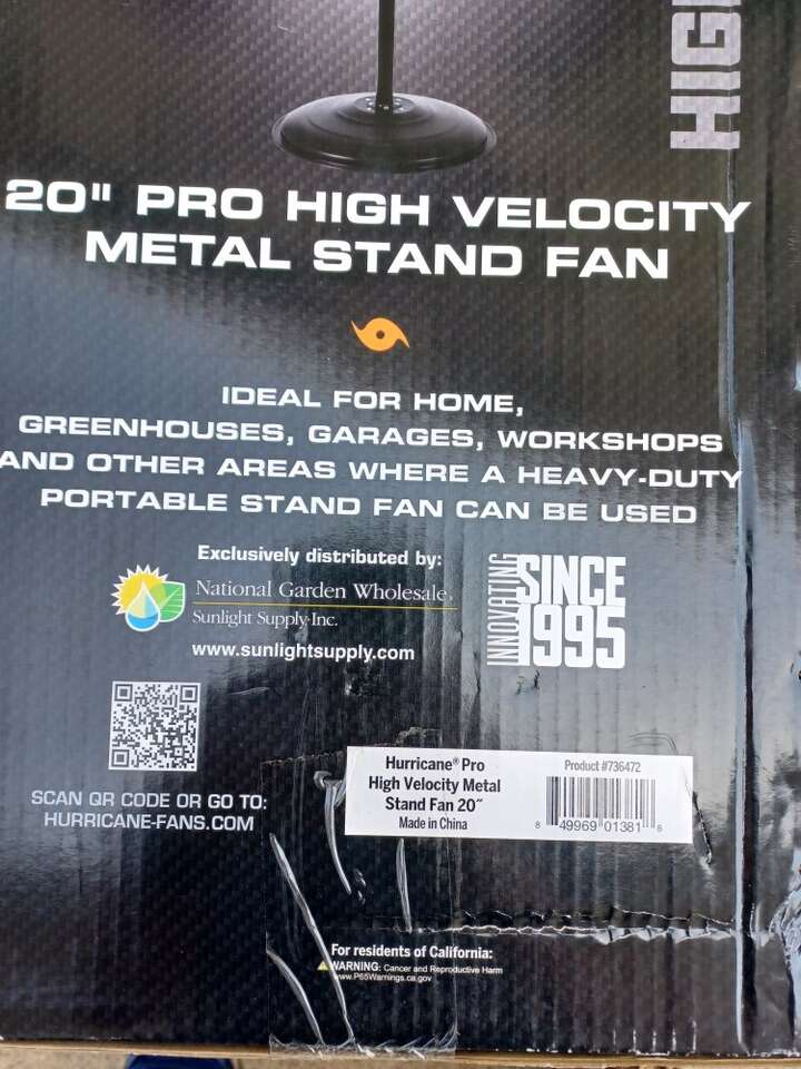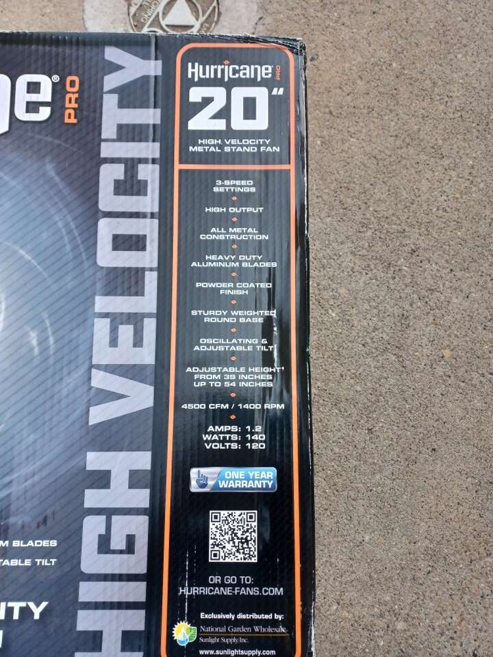 hurricane Pro High Velocity 20 inch pro High Velocity metal stand fan brand new any questions please message me