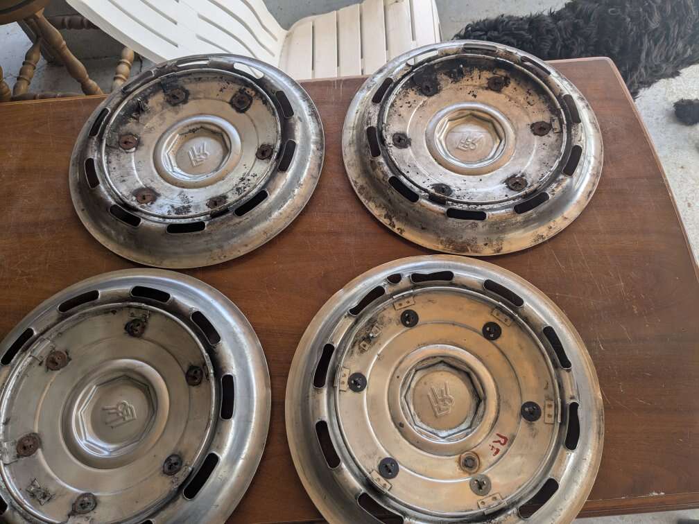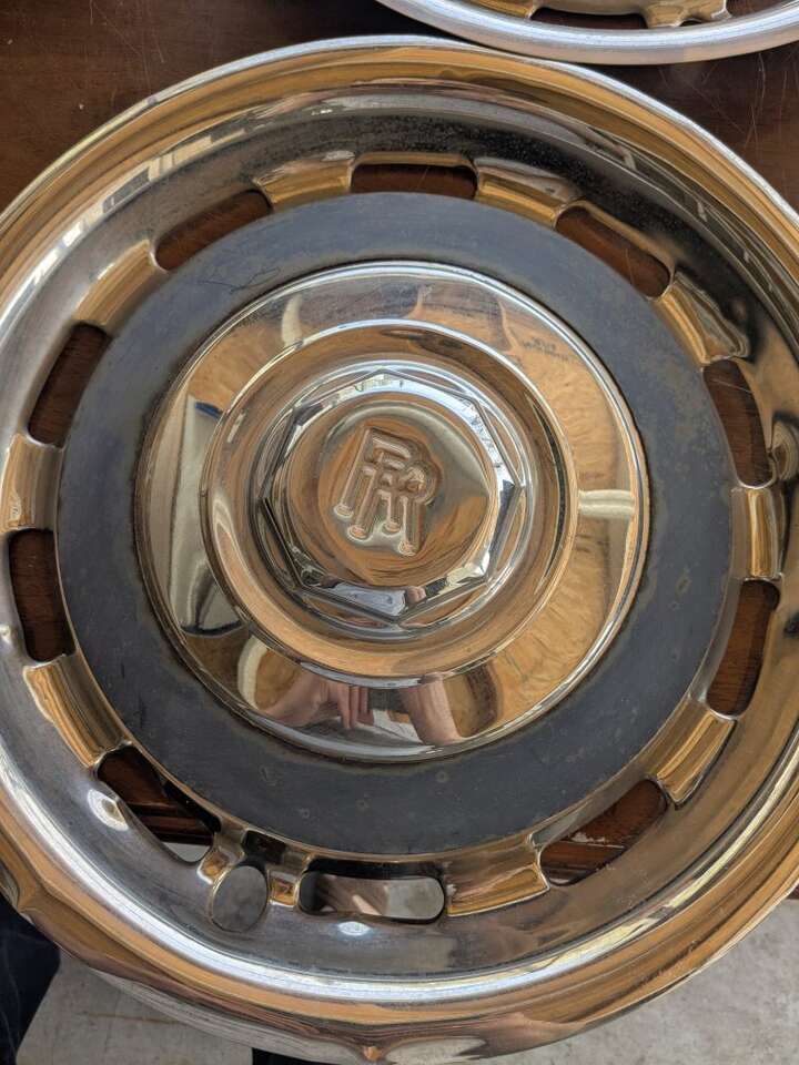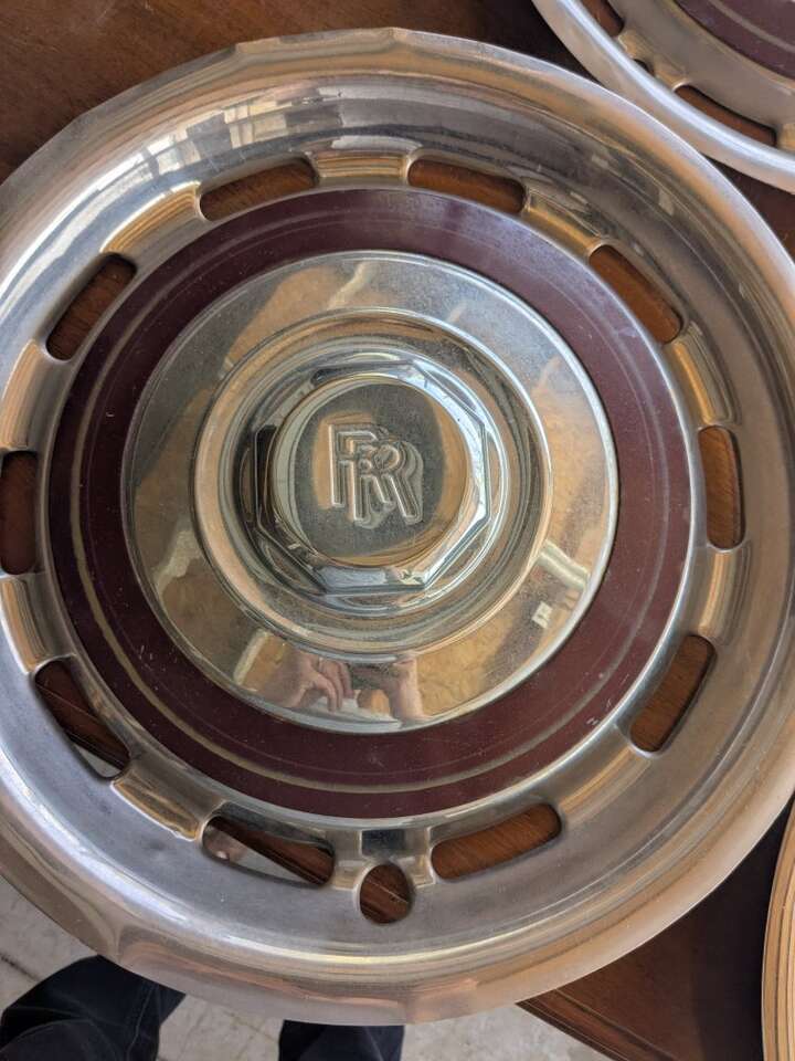 These are original Rolls Royce hubcaps. They came off of a 1982. Not sure what model. Set of 4, chrome with a dark maroon ring. One of the rings has been a little discolored for the weather (shown in the picture) otherwise they are in really good shape. Asking $130 or best offer.