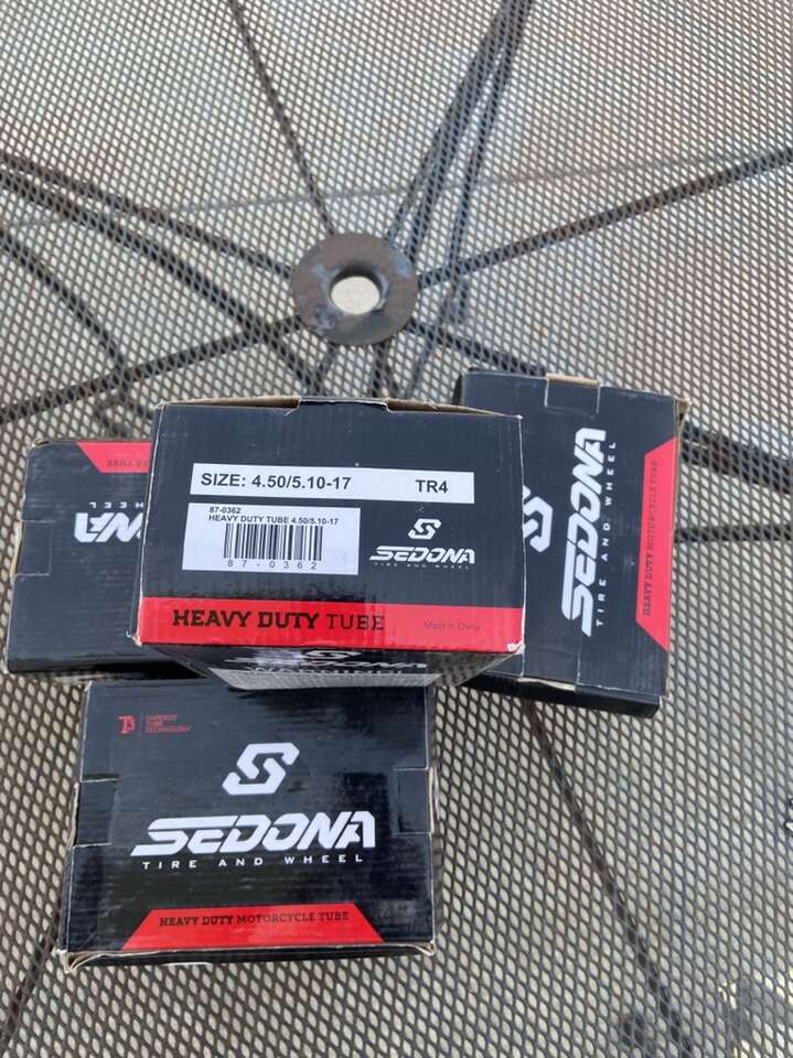 Heavy Duty Sedona Motorcycle Rear Tire Tubes Brand New! Type: TR-4 Size: 4.50/5.10-17 Retail for $20 each Buy all 4 tubes for $60 Or $15 each Thanks for looking