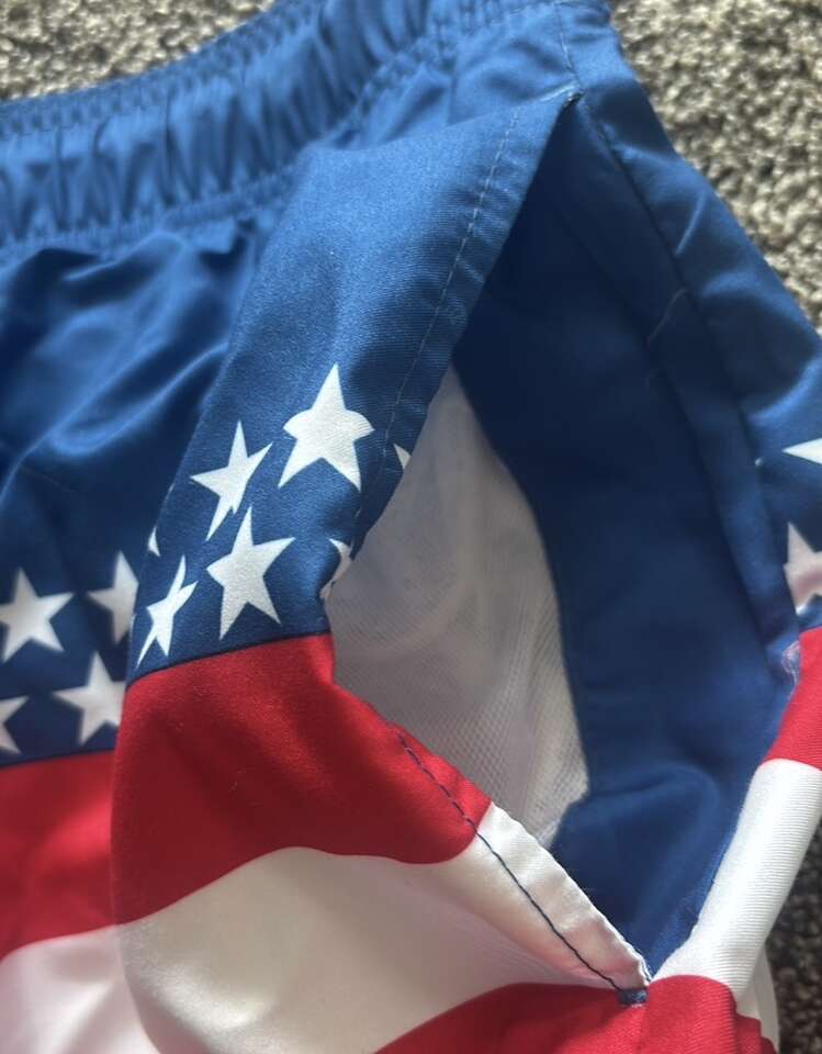 NEW with tags! Red, white, and blue swim shorts in men's size XL. Has adjustable waistband, pockets, and mesh lining. Smoke-free, pet-free home. $10, cash only please.