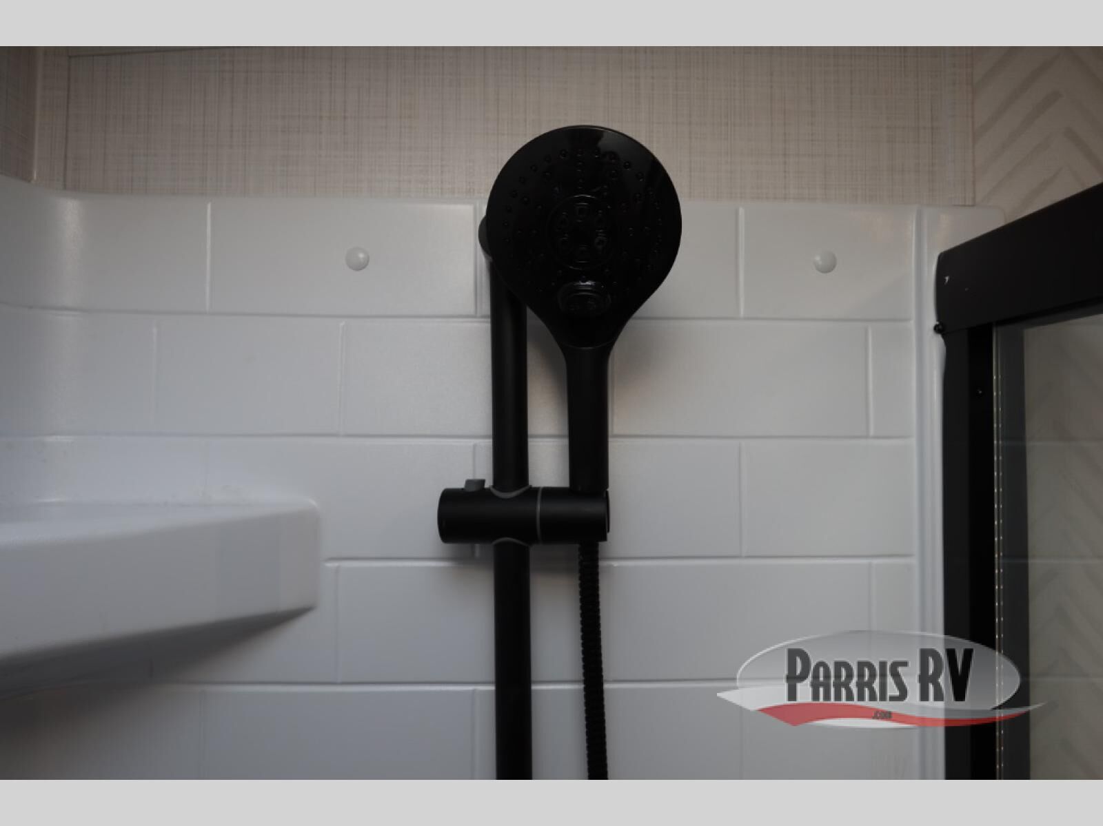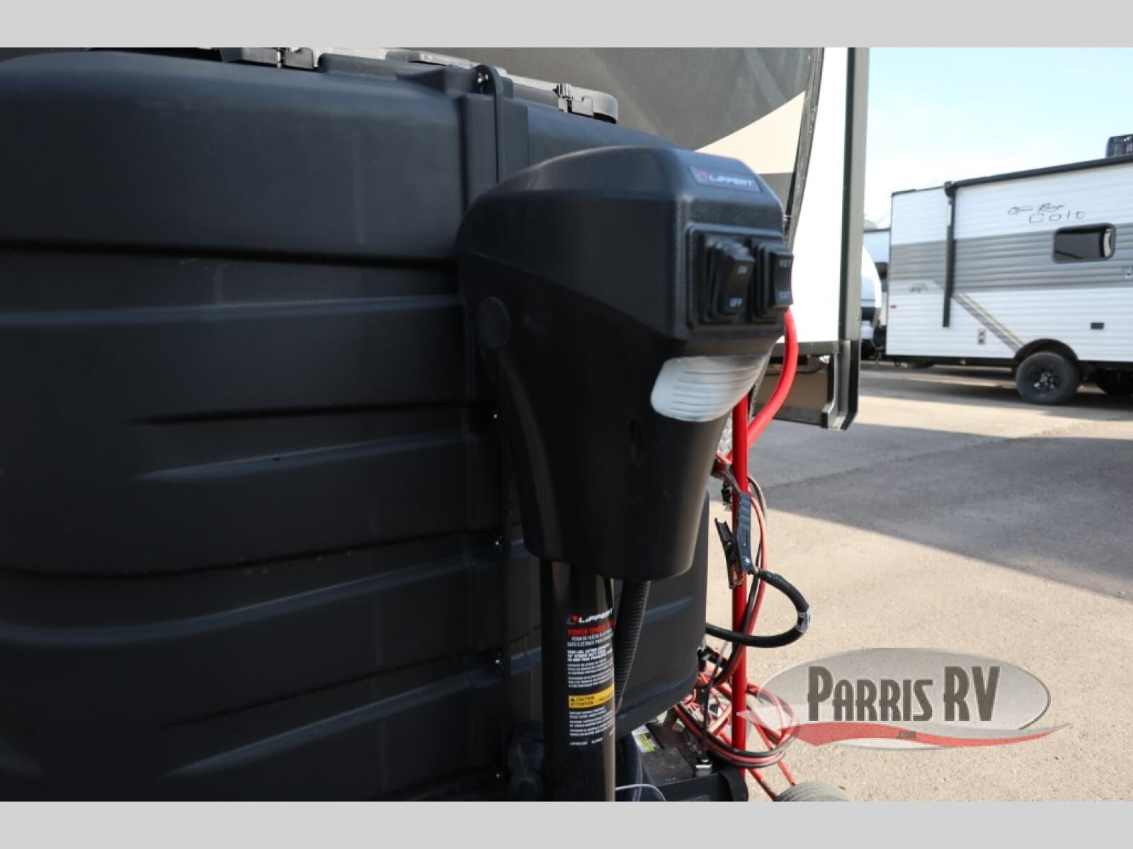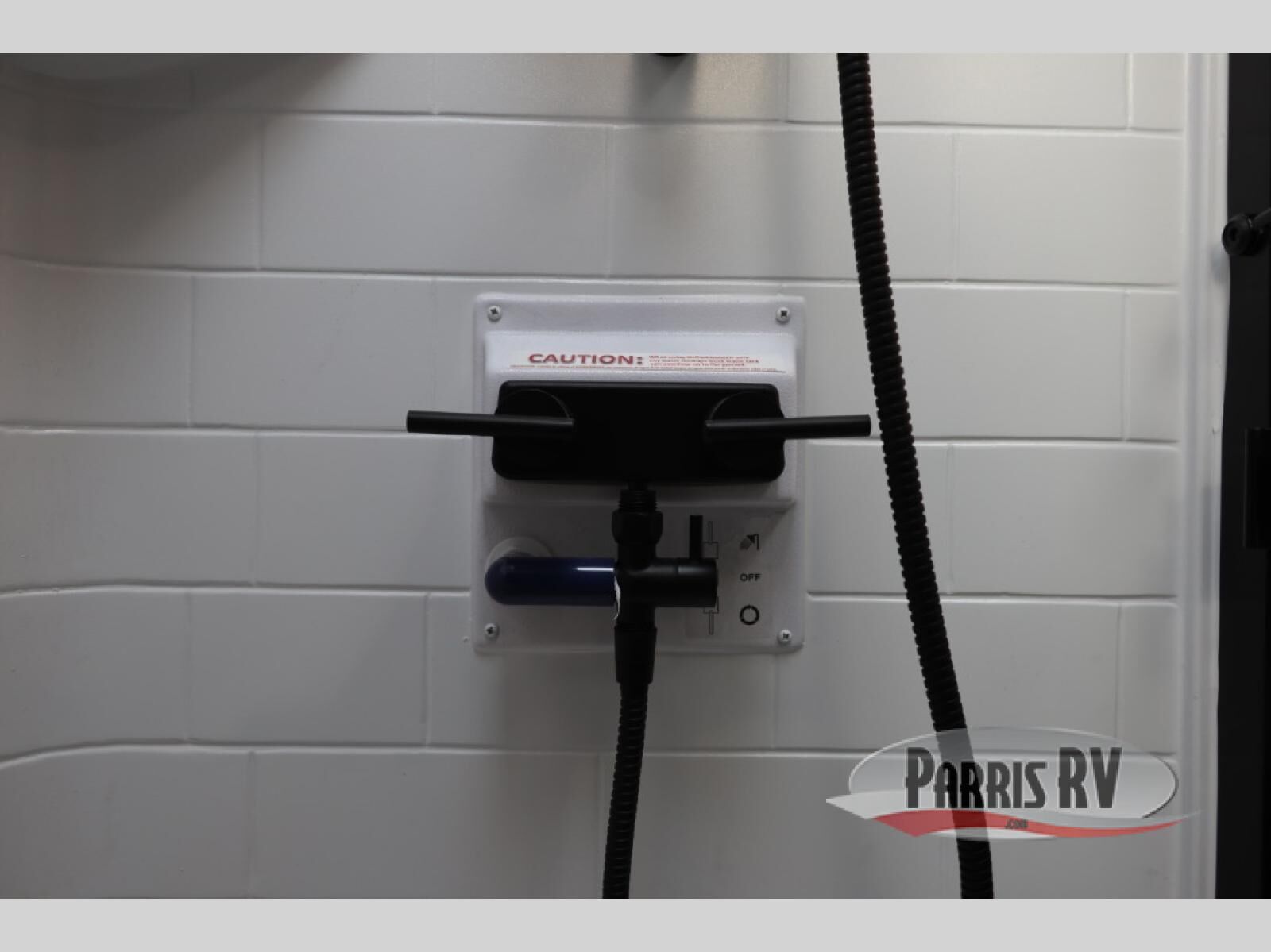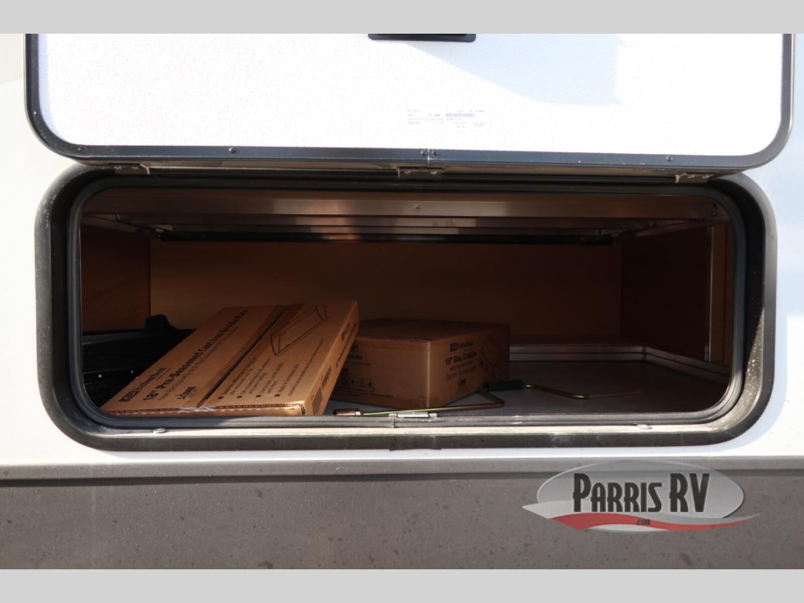 You're going to love the amount of natural light in this model with large windows in the back and the door side. The chef of the group will love the kitchen island, and there is tons of storage space for dishes, food, and knickknacks. The entertainment center with a Smart TV will allow you to watch movies at night, or you may just find yourselves outside under the two power awnings with LED lights. There is also an outside griddle here to cook pancakes in the morning. The king bed is sure to bring comfort, and you'll appreciate the large wardrobe to keep your clothes tidy. There is even washer and dryer prep if you choose to go full-time!