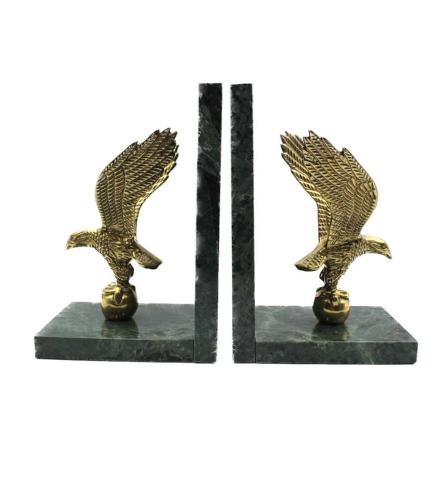 VenmoVintage Brass and Grey / Black Marble Eagle Bookends. Good Condition! inf 702 3558824