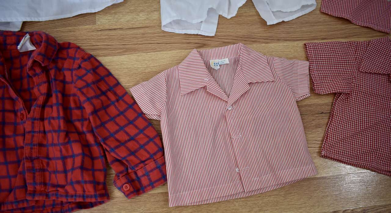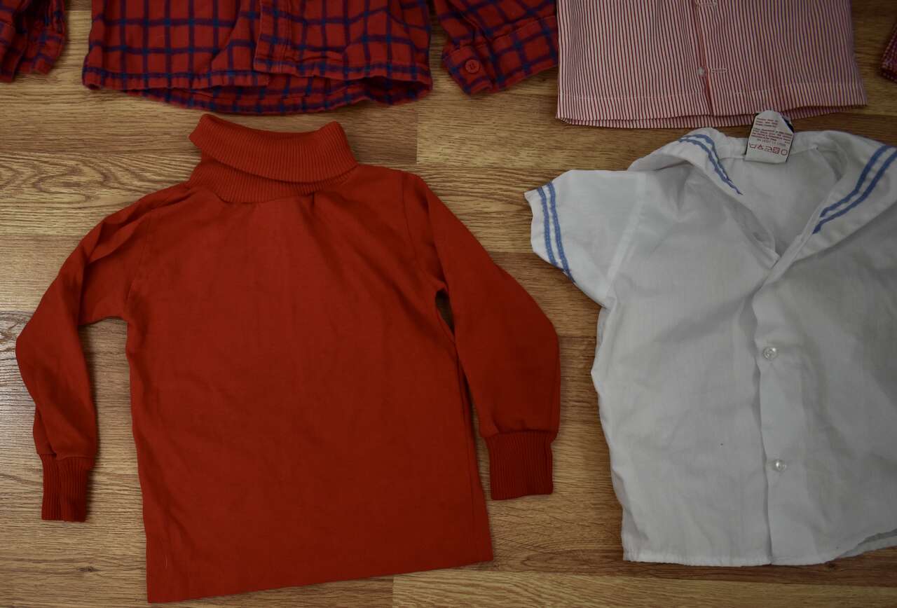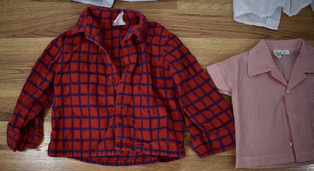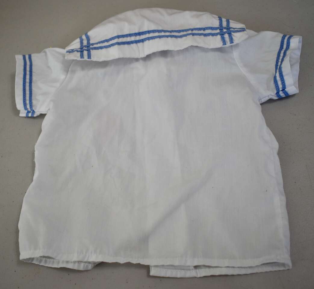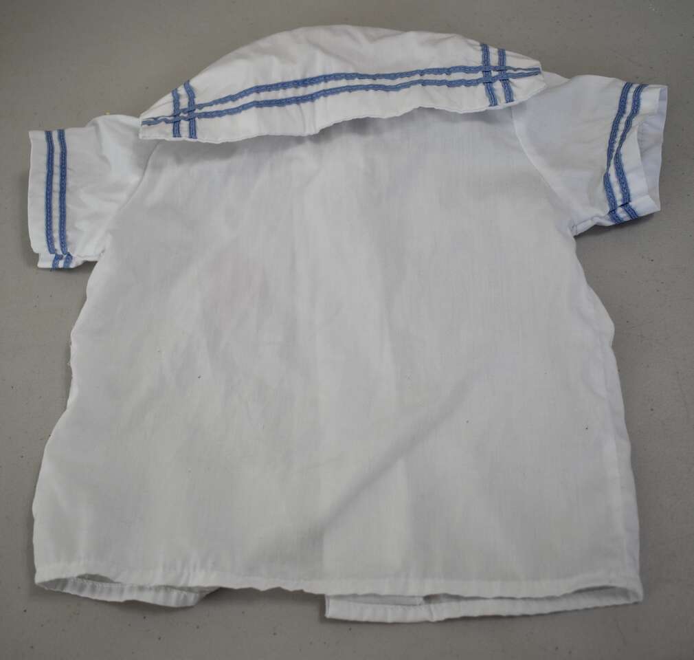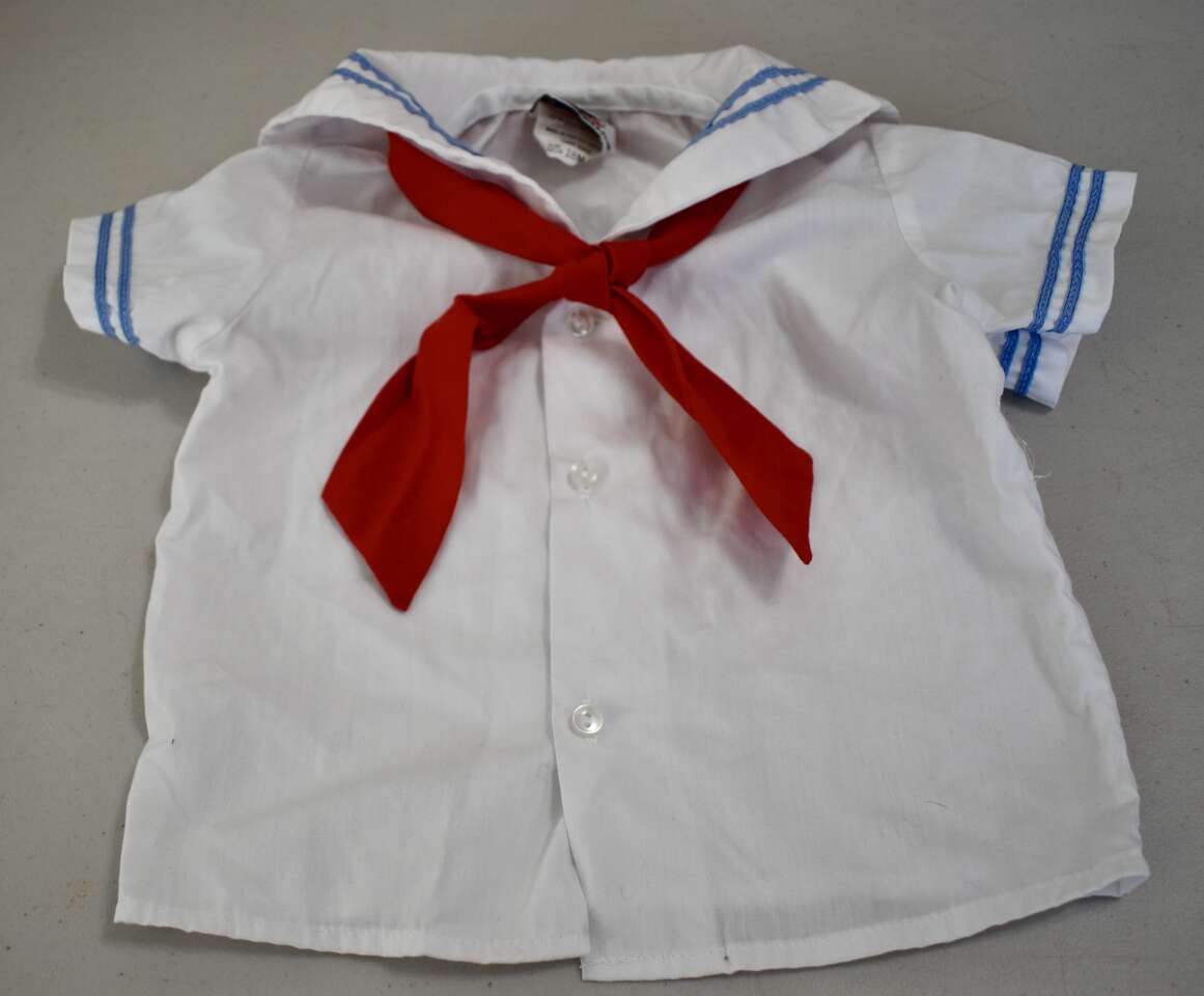 THE VARY IN SIZES FROM INFANT TO TODDLER. The White Sailor Type of Shirt with the Red Tie has a tag inside that says it is a Size-- 18 Months.