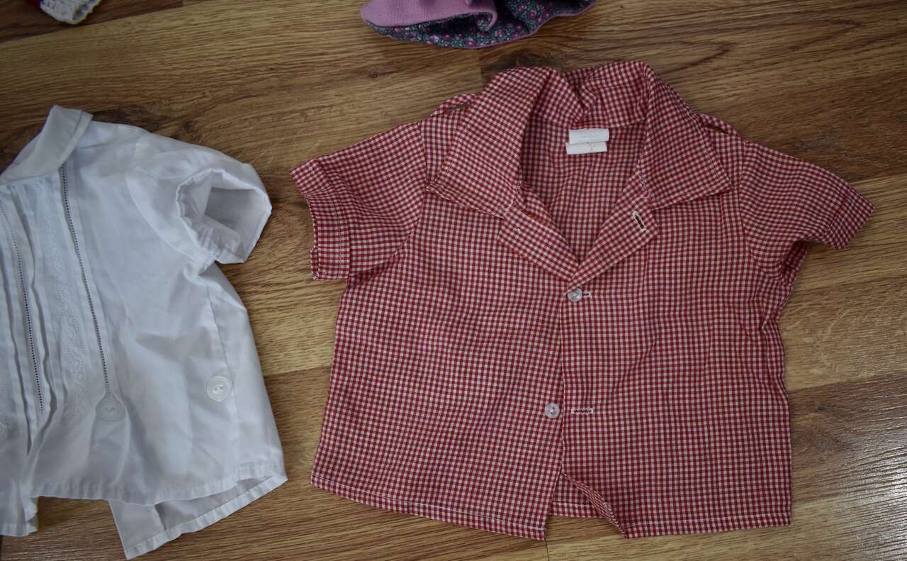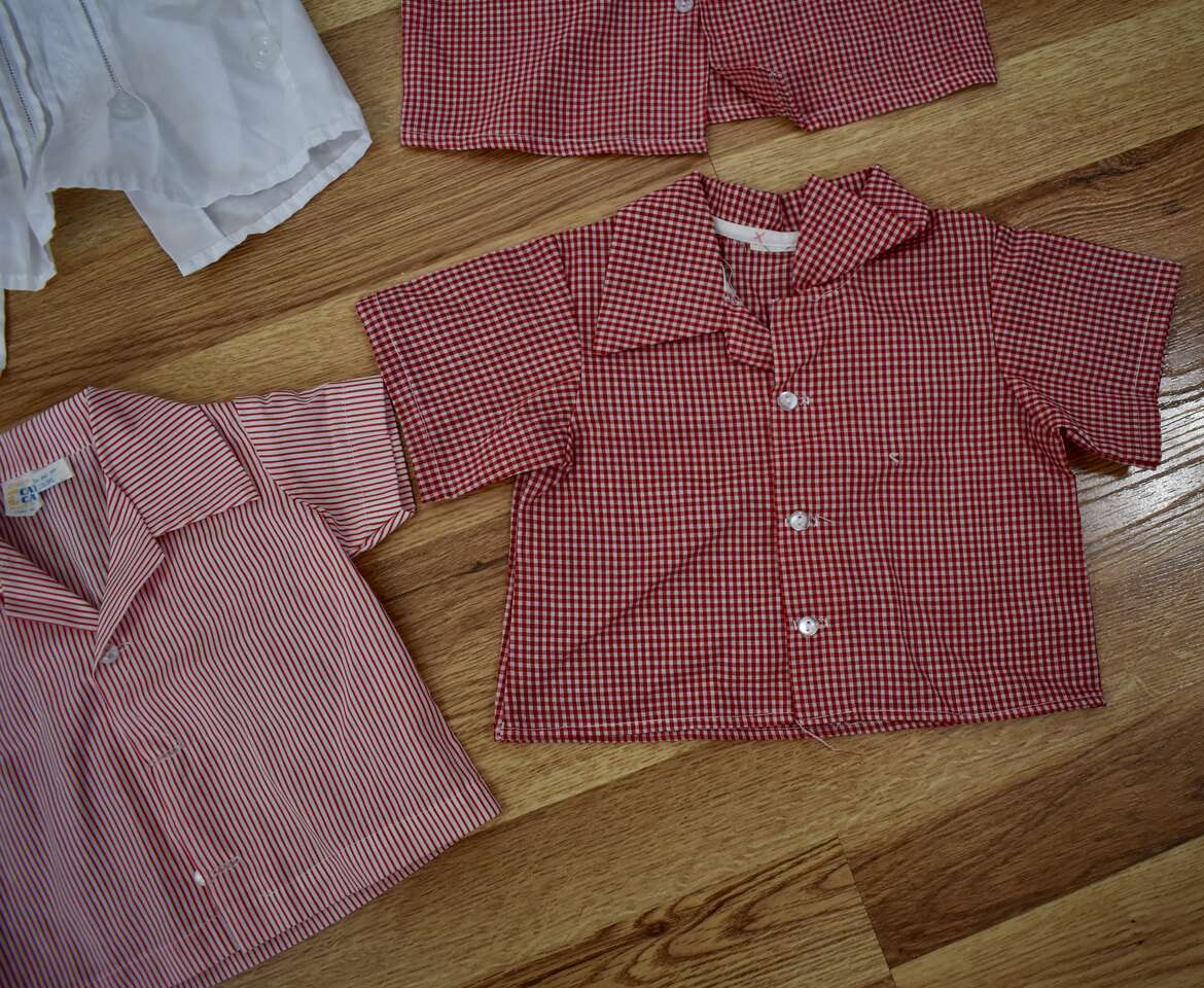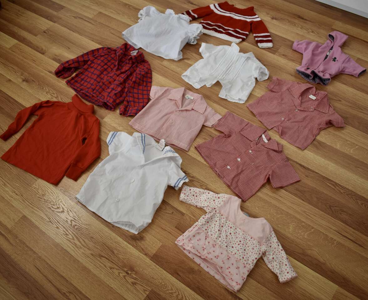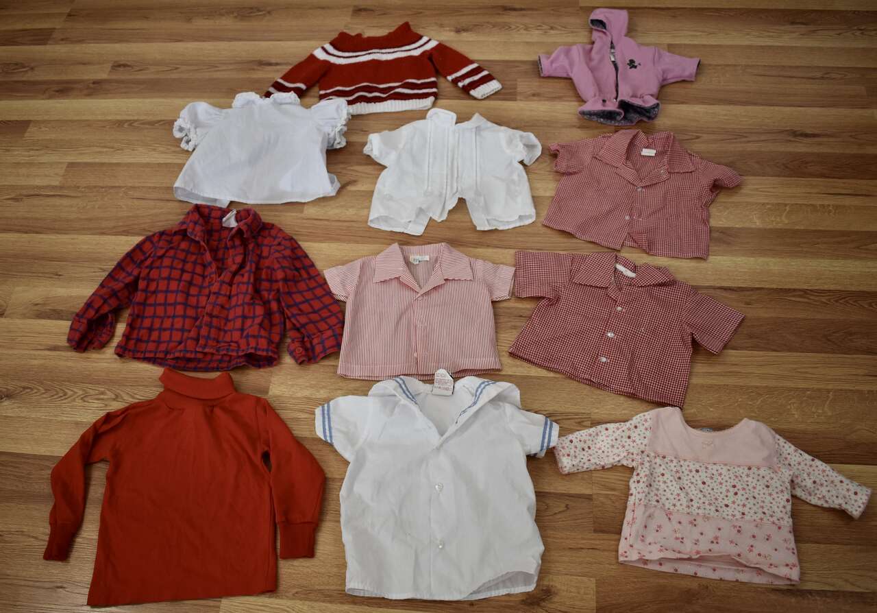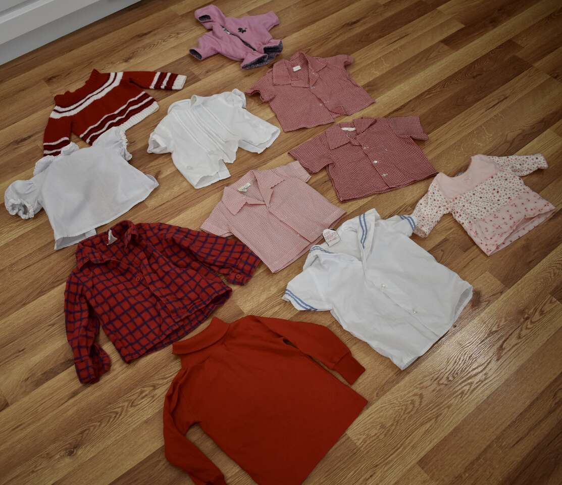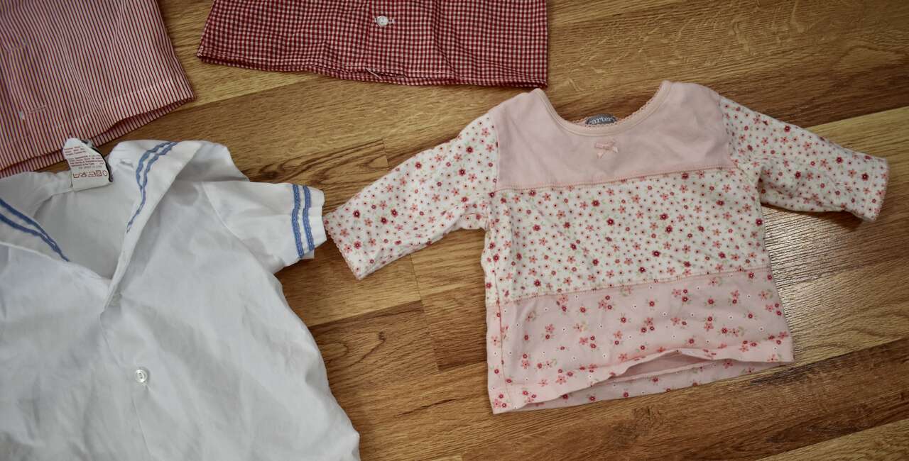 THE VARY IN SIZES FROM INFANT TO TODDLER. The White Sailor Type of Shirt with the Red Tie has a tag inside that says it is a Size-- 18 Months.