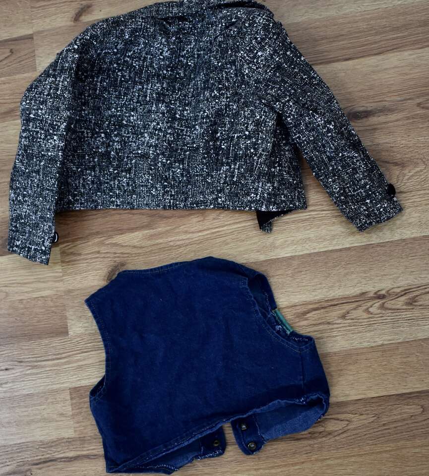 IT MEASURES… The jacket says it I a size 3 on the tag inside and the Vest says that it is a size 5 on the inside but the jacket looks to me to be a bit bigger than the vest so it probably all depends on the size of your Toddler / Child.