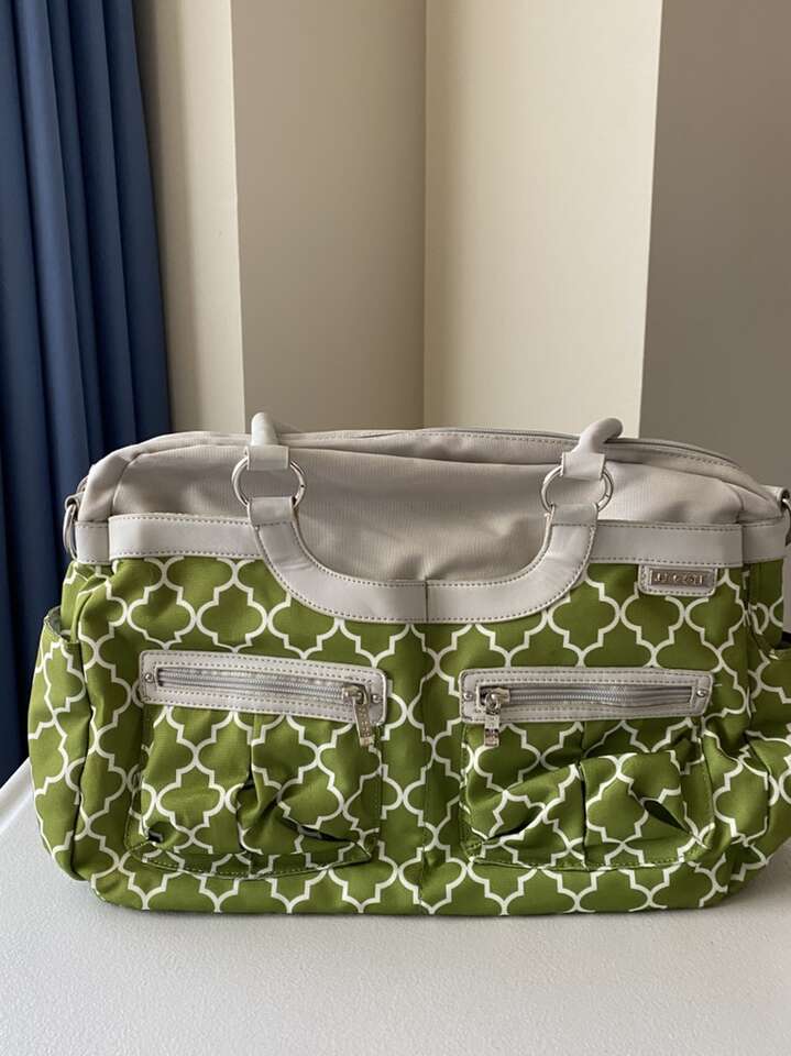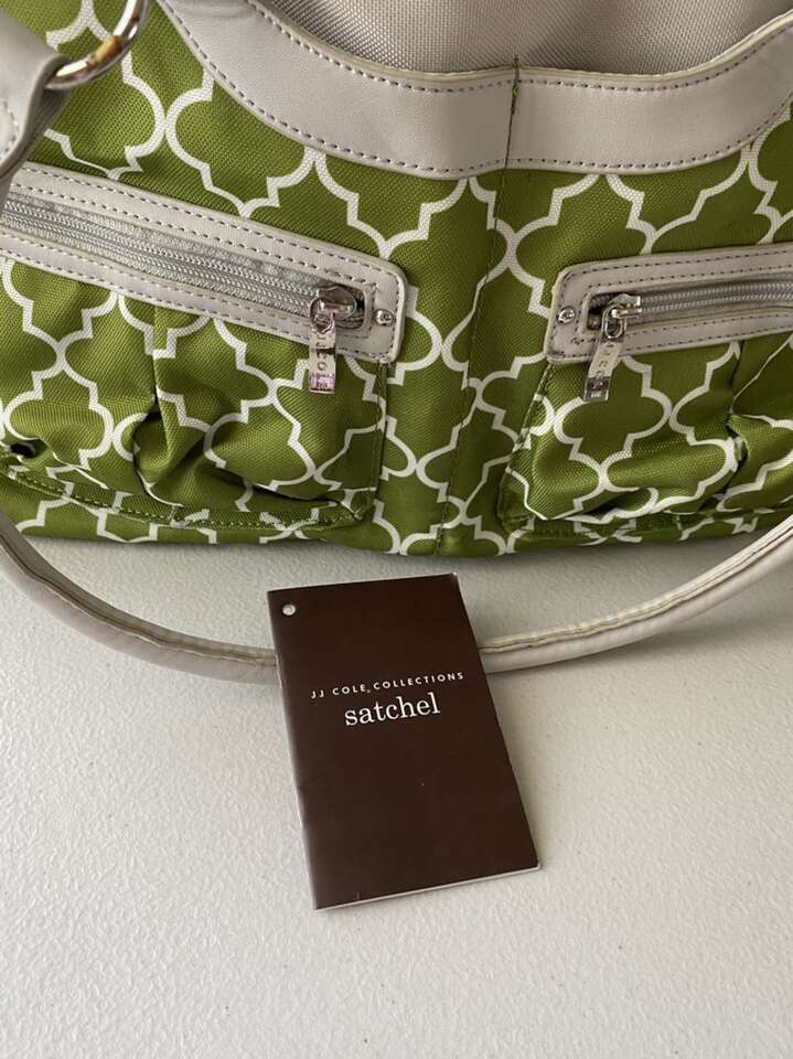 JJ Cole Satchel Baby Diaper Bag Green Arbor with Changing Pad and Stroller Straps