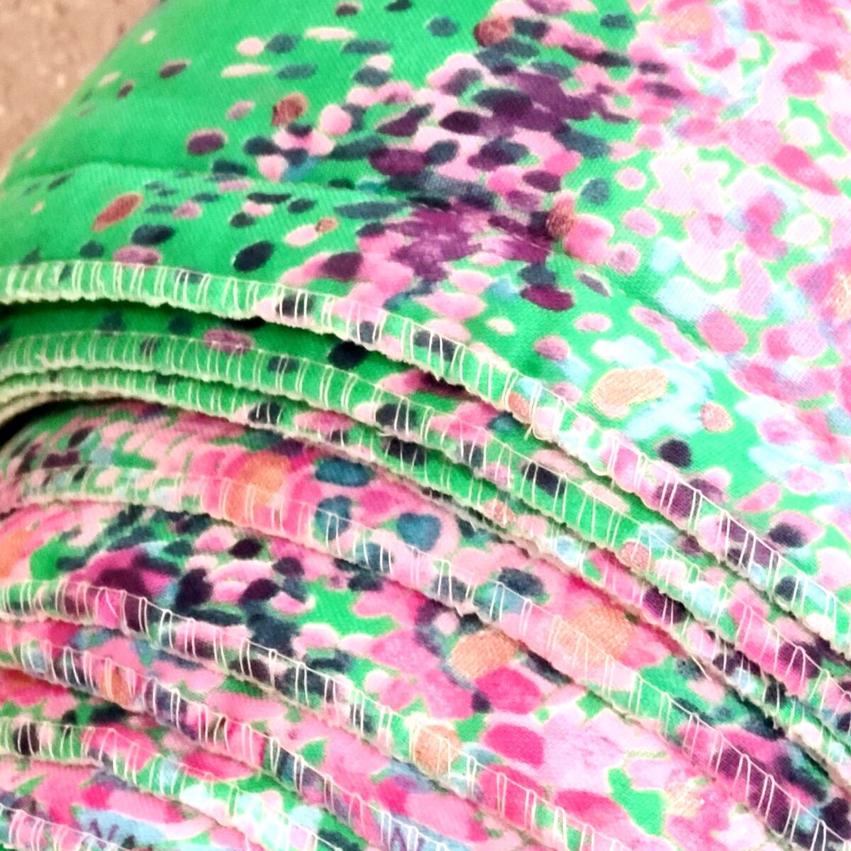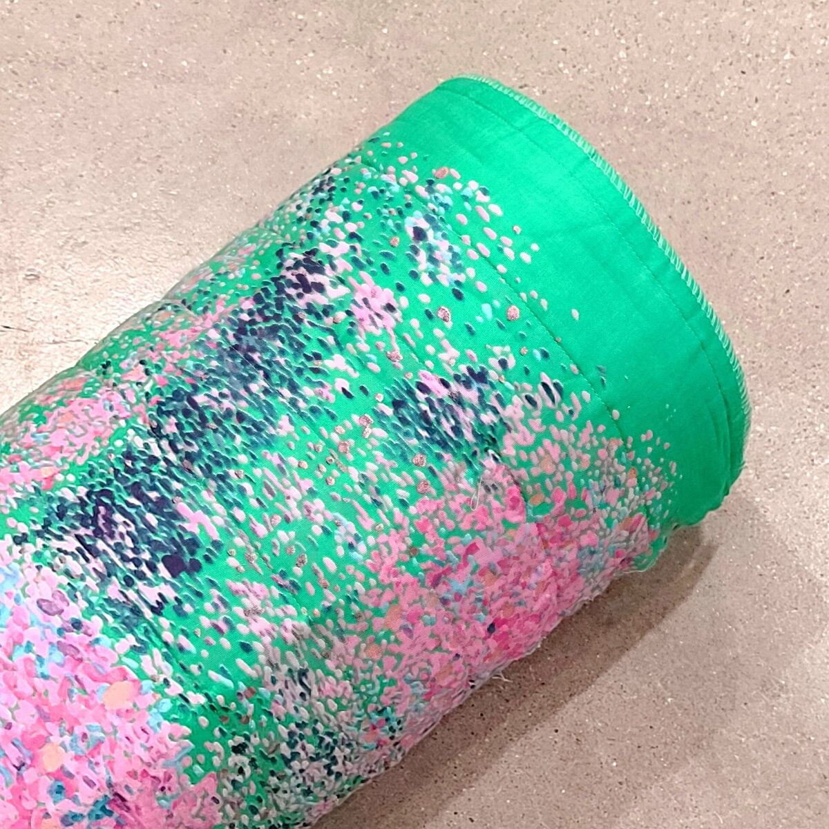 Colors: Pink, Green, Light Blue, Dark Blue, Gold.