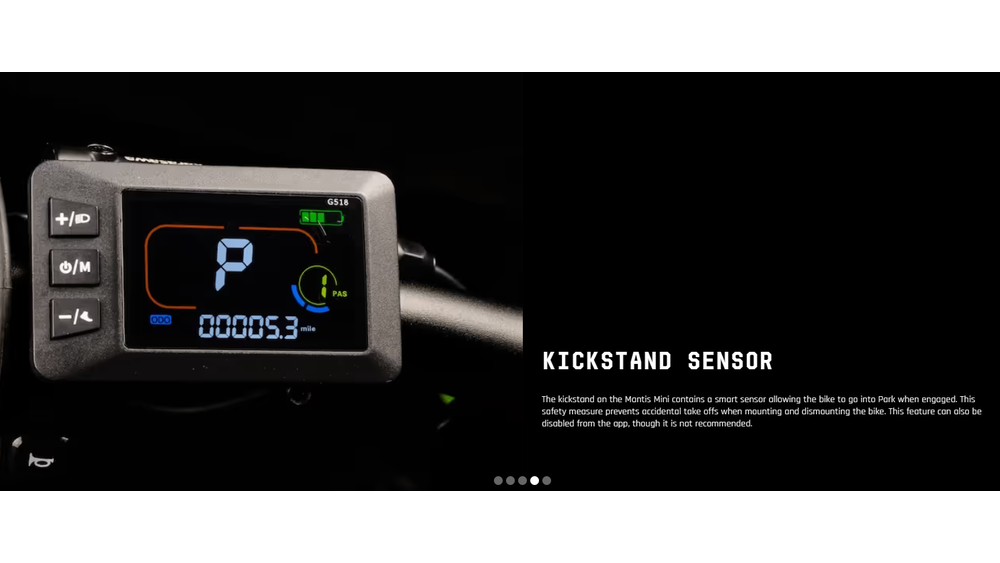 Safety Comes First Your little rider is in safe hands. We take safety seriously. We equip all of our Mantis Mini Rs with advanced safety features to keep you, or your little one safe.