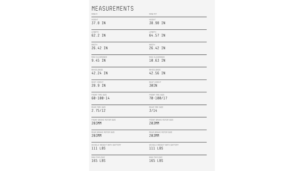 Ride together Grow Together Riding is more fun when it's shared! Whether it’s a little brother following in his older sibling’s tracks or parents joining in on the adventure, the Mini R and R17 make it easy for the whole family to ride together.