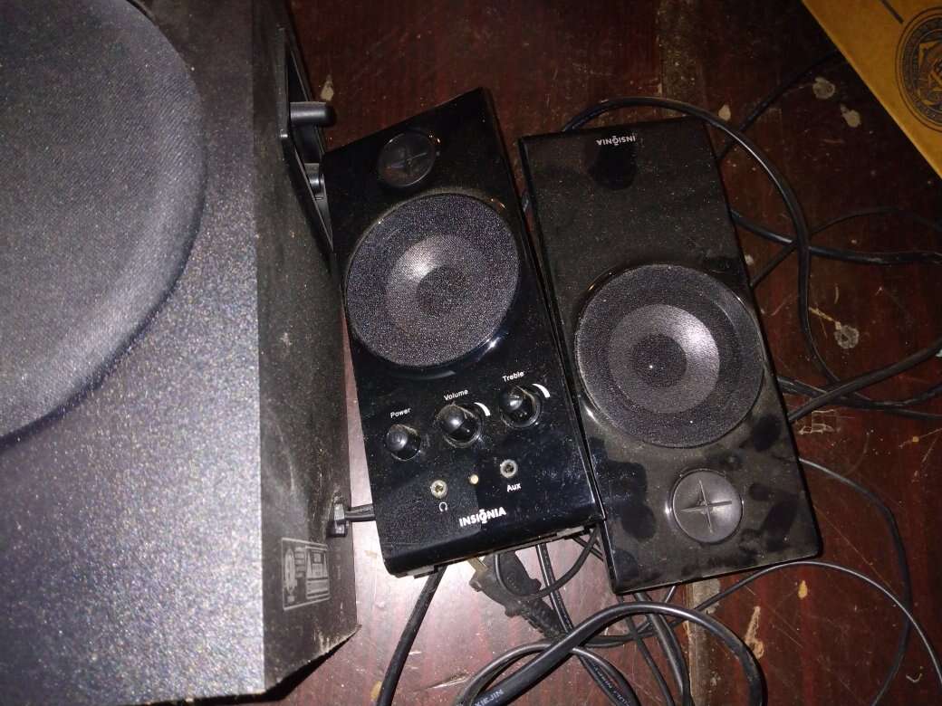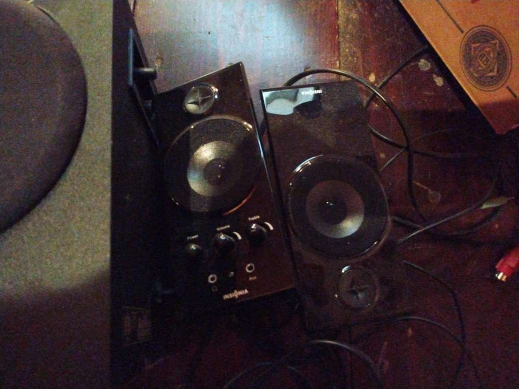 Two speakers and an amplifier in working condition.