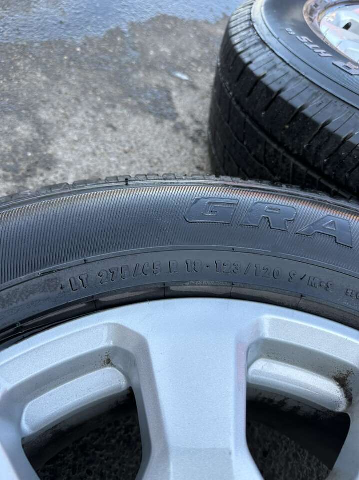 The tires are a General Grabber HTS, 275/65r18’s. they’re in good shape with a good bit of tread remaining, these tires are free from major damages such as patches or plugs, no sidewall damages, and no uneven wear.
