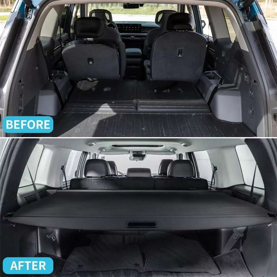 Perfect Fit for Your Vehicle: Specifically designed for the Kia EV9 2024 2025, this trunk cargo cover fits perfectly with your vehicle's dimensions. Whether you're on a long road trip or using it daily, this cover provides the best fit and functionality.