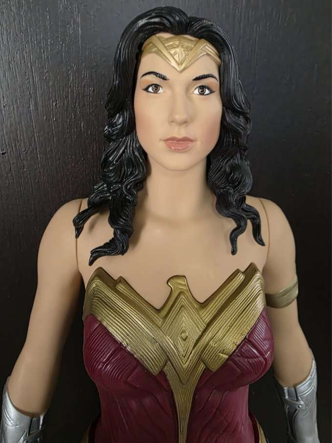 Pre-Owned DC Theatrical Big-FIGS Justice League 20" Wonder Woman Action Figure. Bros, Justice League, your favorite superheroes come to life as 20 inch action figures. These action figures stand 20 inches tall, with 7 points of articulation and come with real fabric goods to bring to life the action. Perfect for kids and the kid at heart!. See all photos, text message is better, see my other adds, thank you.