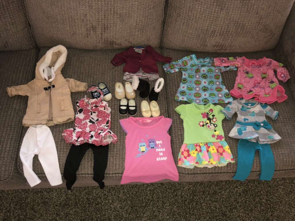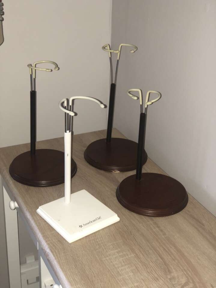 Doll stands $10 each— SOLD Doll clothes $15 for all clothes pictured— SOLD