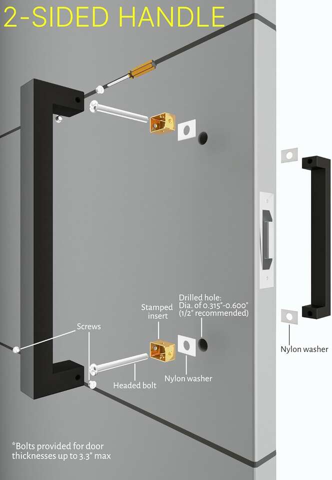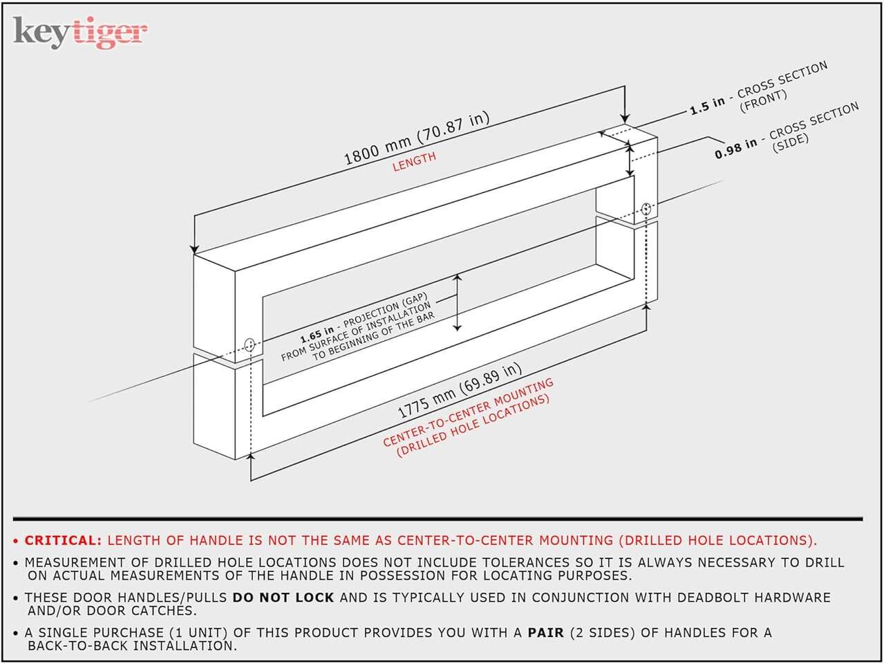 Venmo71 Inch Long Modern Stainless Steel Matte Black Door Handle Interior Exterior Back-to-Back Door Pull for Wood Glass Metal Door Sliding Glass Shower Door, Barn Door Handles, Square Rectangular Bar.