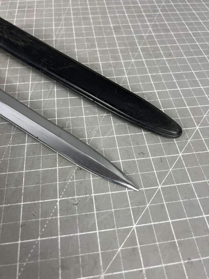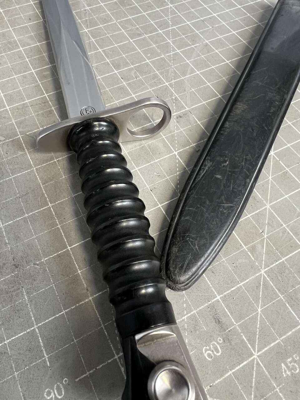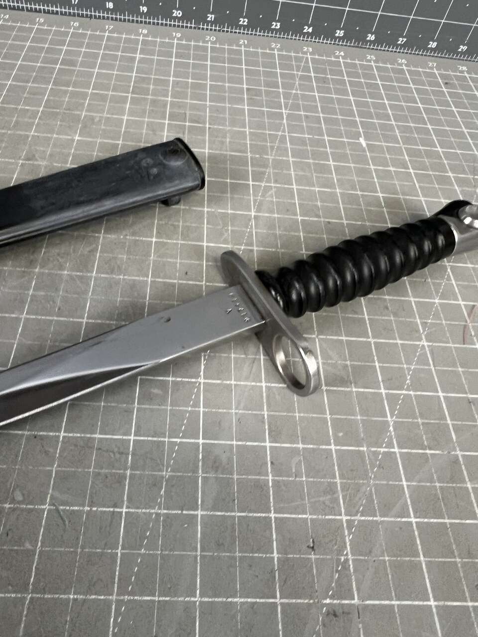 The bayonet may have a slightly bent/blunt tip Blade edges may have small knicks or blemishes The handle and scabbard may have visible blemishes or scratches