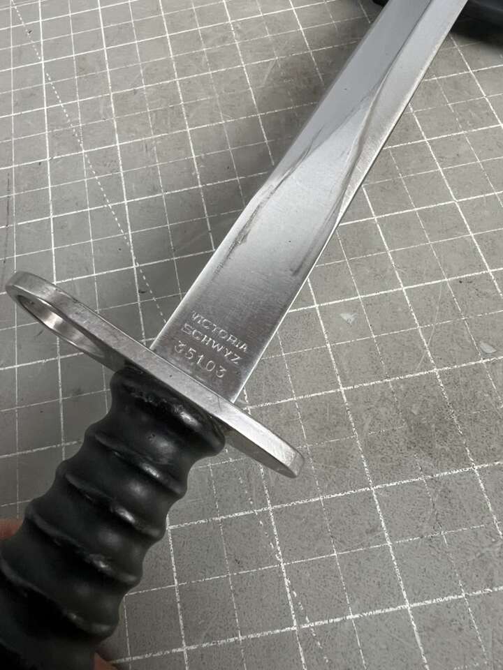 VenmoThis vintage Swiss Army bayonet was originally issued with the S.I.G. 57 Military rifle to the Swiss soldiers. It was manufactured in the 1950s and 1960s by both Wenger and Victorinox, the manufacturers of the famous Swiss Army knives. Each bayonet comes with its original scabbard.