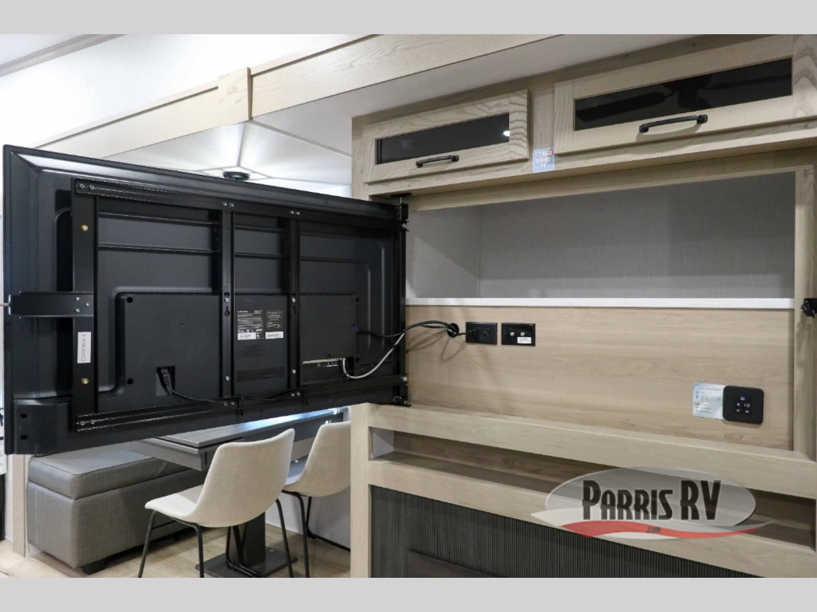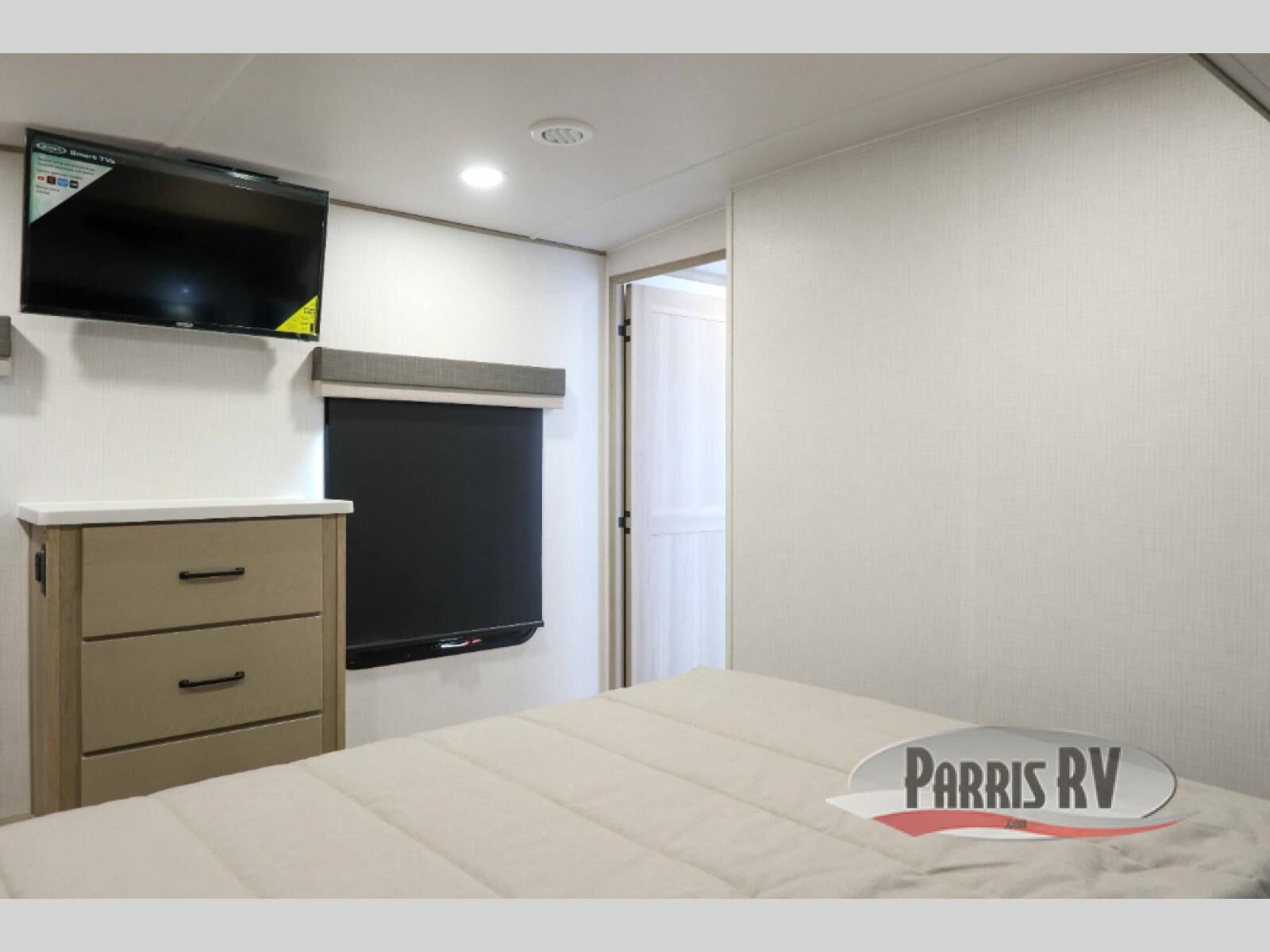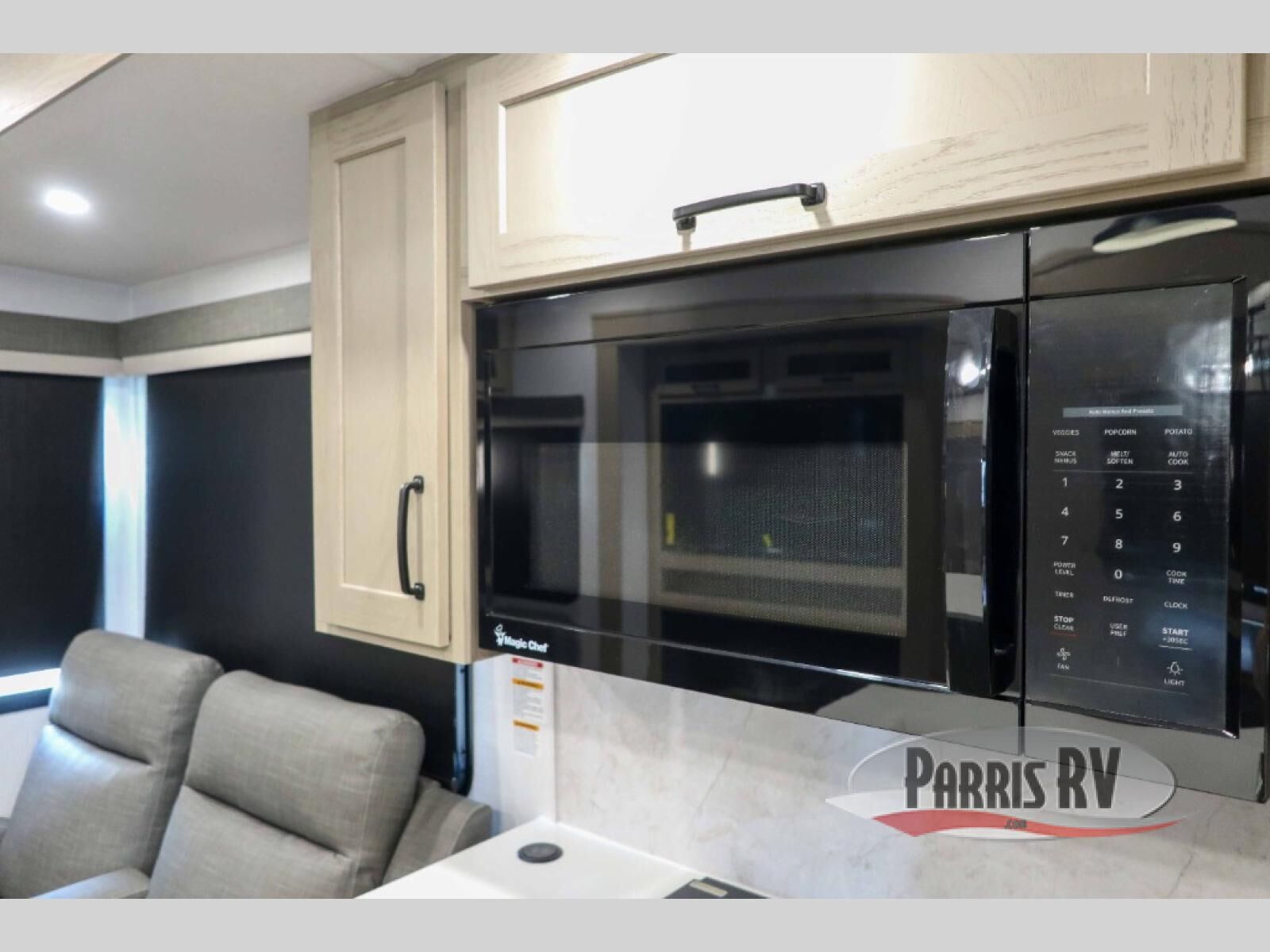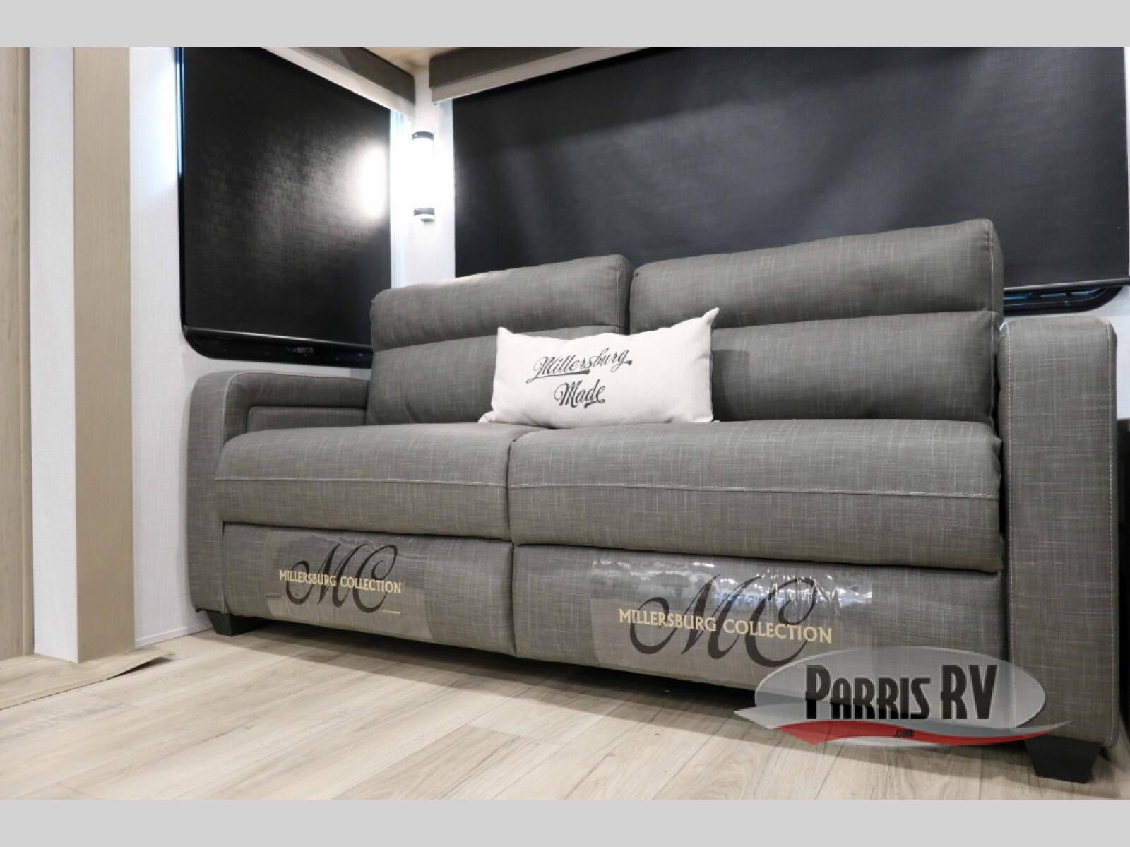 You'll be camping in style each time you take this fifth wheel out to the campground! The dual opposing slides in the main living area create an open floorplan, and the kitchen island here will provide more counter space to prep meals. You will love the theater seat directly across from the entertainment center and fireplace, and additional seating can be found on the hide-a-bed sofa or the dinette with chairs and a bench. The full bath includes a shower with a seat, a skylight, plus a Maxxair ventilation fan to keep everything fresh. The front private bedroom may feel more like a resort with its king bed slide out, large wardrobe and shirt closet, plus a dresser to keep your clothes tidy. And did we mention this fifth wheel has two power awnings for maximum protection against the elements, and tons of exterior storage for all your gear!?
