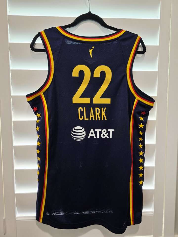 CashAppSnag the official Caitlin Clark #22 Indiana Fever Jersey in the bold Nike Explorer Edition style, just in time to show off your fandom during her 2nd season! This jersey is navy with crisp yellow lettering, red/gold trim, and side stars that scream “future legend.”