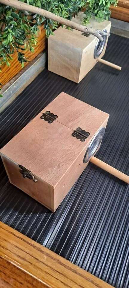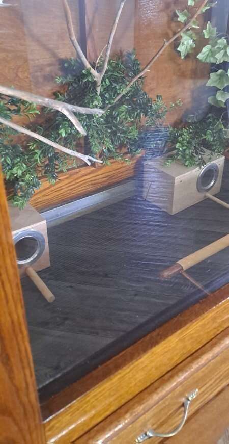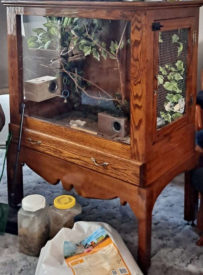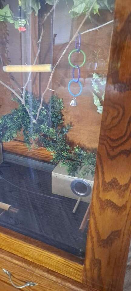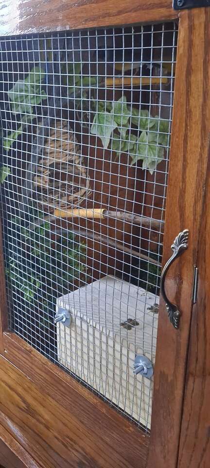 Critter Cage or Bird Cage Can be a home for birds, finches,love birds, and smaller parrots. Can be a home for sugar gliders, ferrets, rats, mice, hamsters, gerbils, and chinchillas. And maybe bigger snakes, never have tried it with a snake, though. Made with Real Wood. Plexi glass in front. Makes a great view to see pets inside. There is a door on each side for easy access and for cleaning, with a secure slide lock. ventilating the air on each side of the openings. There is plenty of room for a few pets to live in, and be safe and secure. Strong,sturdy, and very well made, rolling wheels, make for easier moving around. Pull-out sliding drawer for easy bottom of cage cleaning. Top of Cage and base of Cage are both separate pieces. Measurements Top Cage and bottom base are 52" Tall 39 1/2" wide base part of the cage 23 1/4" deep, base part Cage living area is 38" wide 21 3/4" Deep Side doors are 23 1/3" heigth 16 3/4" width