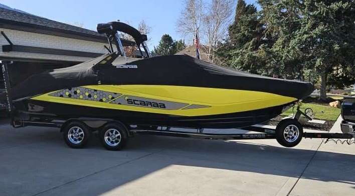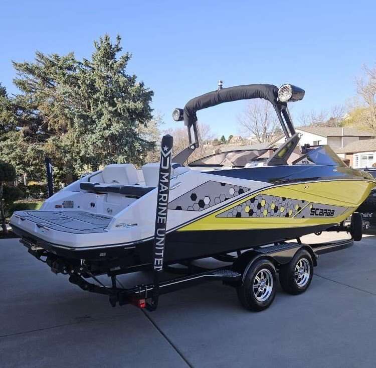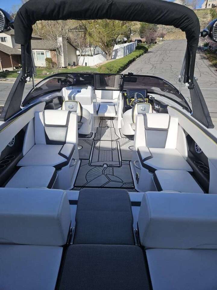 This 25 foot surf boat has two 250 jet motors and holds up to 13 people. It has ample seating with room to move around and lots of storage! Upgraded sound system, two flooring options, tinted windshield, surf gates and automatic fill/empty ballast (2500 lbs.) Trailer has new tires and brakes, and the boat has been ceramic-coated. It's 100% ready for the lake!