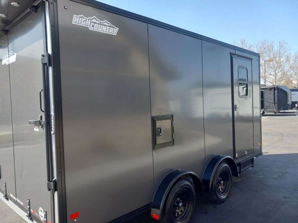 LIMITED TIME $244 A MONTH WITH ZERO DOWN WITH OUR SPECIAL LOCAL CREDIT UNION PARTNER!!! NO PRE PAYMENT-PENALTIES!!! EASY IN-HOUSE APPROVAL!!!!!!! NEW!!! High Country 7.5x16 ALL ALUMINUM UTV/ATV Enclosed Cargo Trailer with UTV ESCAPE DOOR!!! 88 Inch Rear Entry Height, w/ a 91 Inch Interior Height!!! BLACK OUT Trim Pkg! TORSION SPREAD AXLE!! SLIDING D-RINGS!! LIFETIME FACTORY WARRANTY!!!!