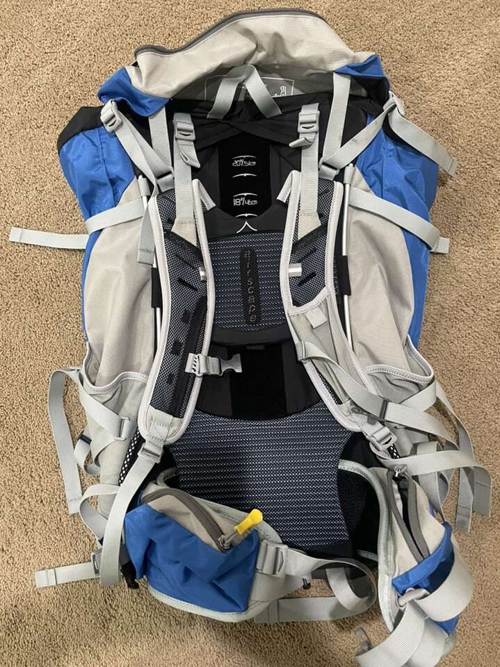 ZelleThis is a great backpack for smaller sizes. Torso length is adjustable - just rip off Velcro, adjust and stick it. Holds 48 liters. Has 6 compartments for gear organization. Padded shoulder straps, Adjustable waist belt.