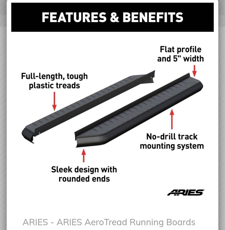 VenmoARIES AeroTread Running Boards, 2051973. 5" x 73" Black. Brackets Sold Separately. New and unused. $280